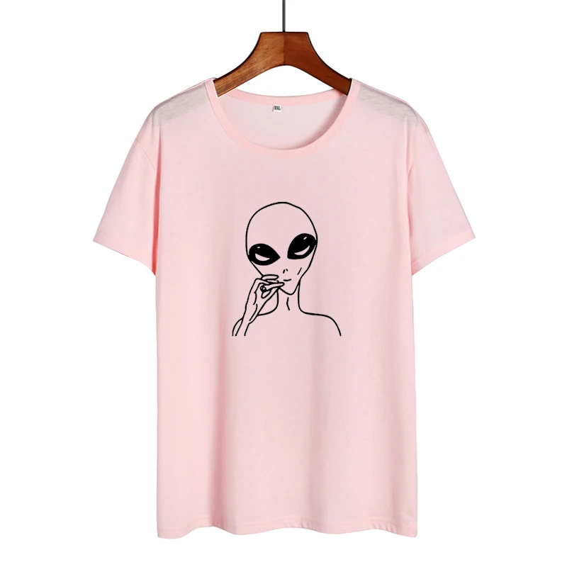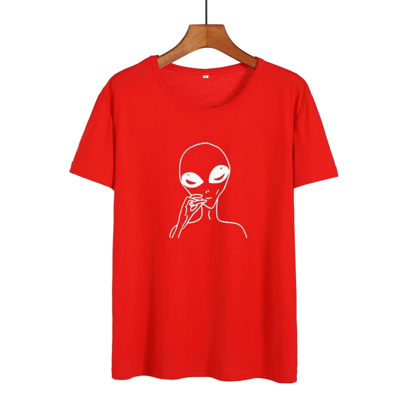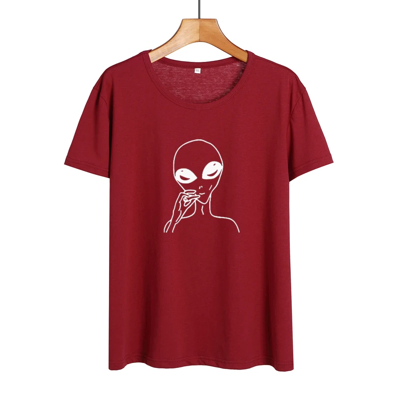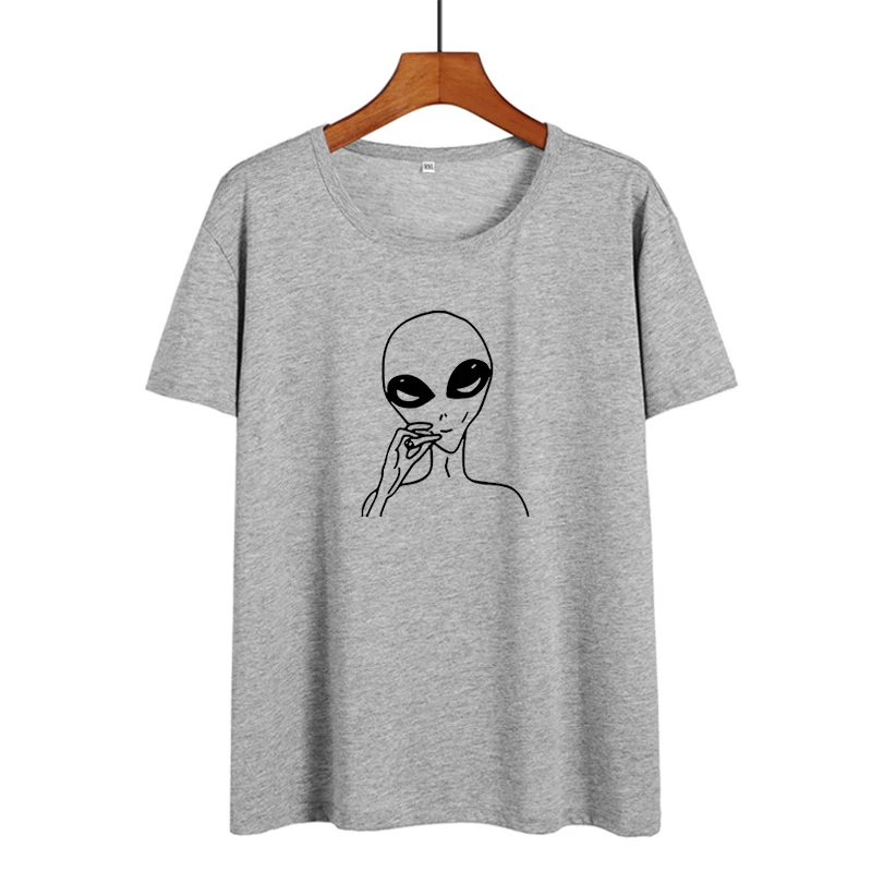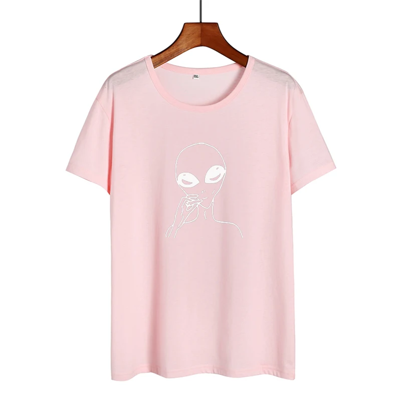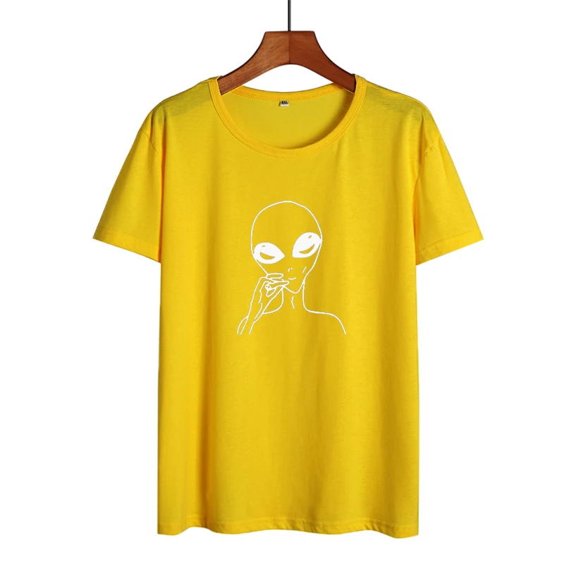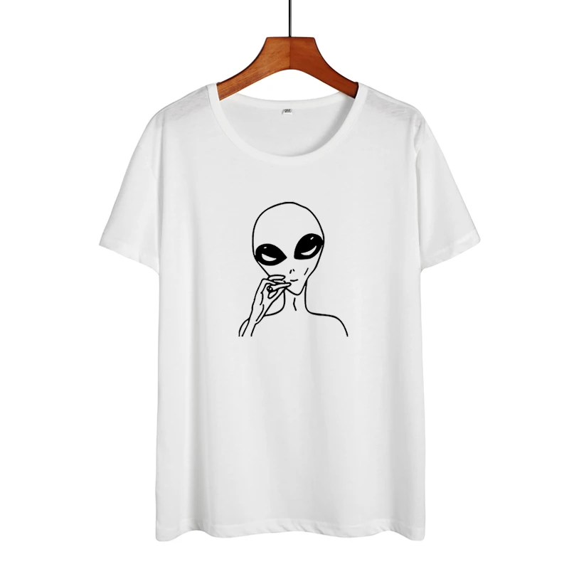 Funny T Shirts Women Clothes 2019 Tumblr Harajuku Alien Smoke Weed Printing T-shirt Korean Fashion Graphic Tees Women Tops