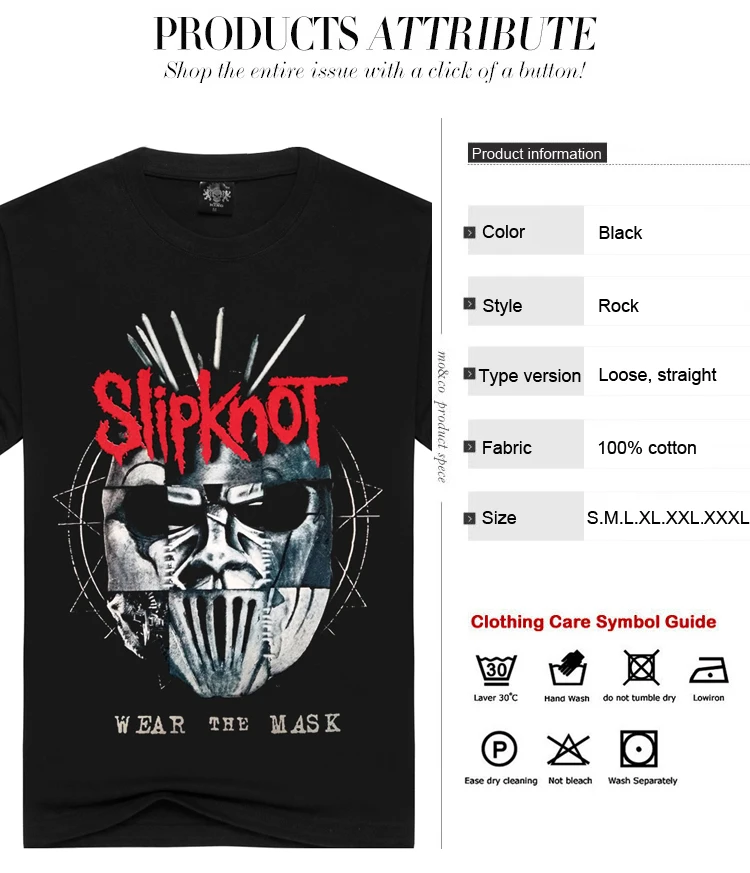 Summer Men/Women Slipknot t shirt Summer Tops Tees Wear the mask Rock T-shirt Men loose t-shirts Fashion Tshirts Plus Size