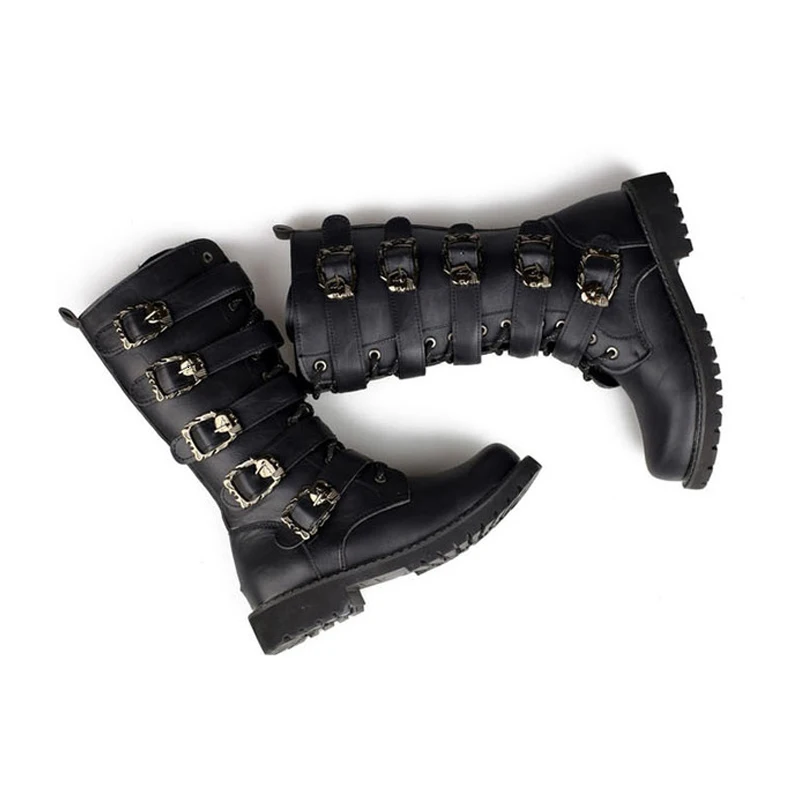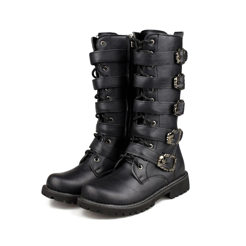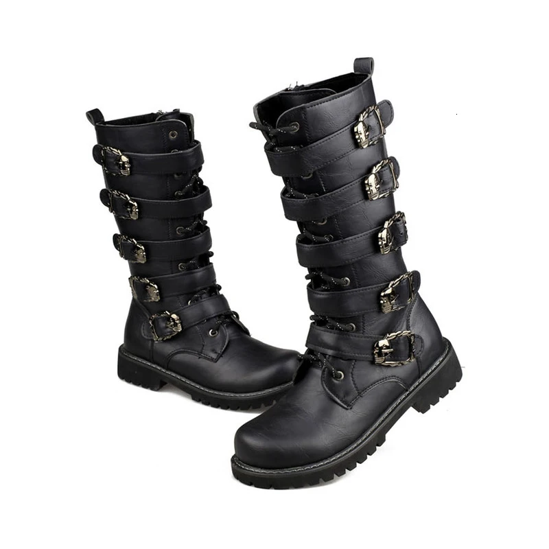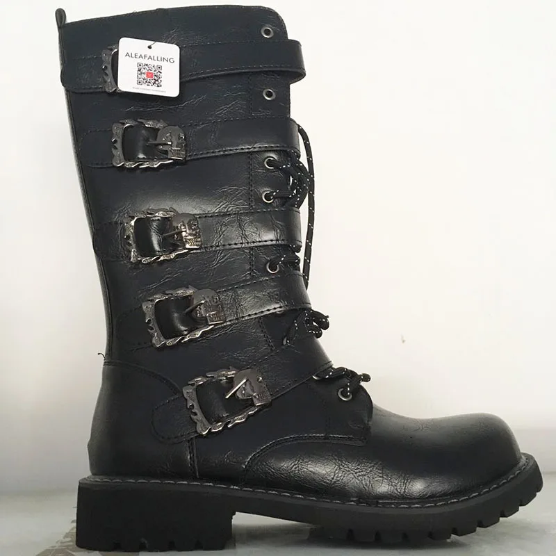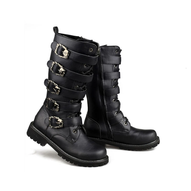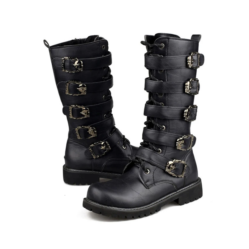 Riding boots Army Boots Men High Military Combat Boots Metal Buckle Punk Mid Calf Male Motorcycle Boots Lace Up Men's Shoes Rock