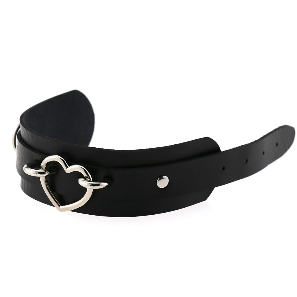 Heart Bracelet Black Leather Wristband Cuff goth gothic punk armbands Fashion bracelets women men emo metal cosplay jewelry