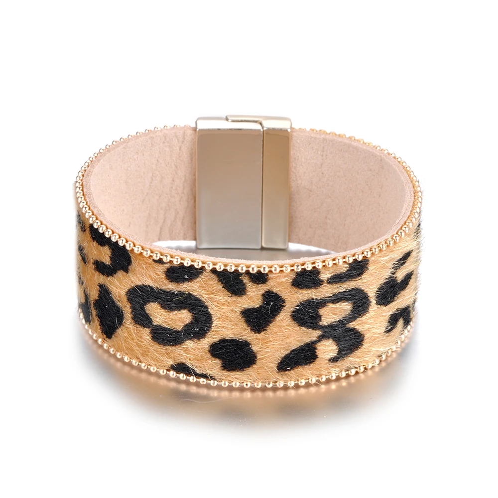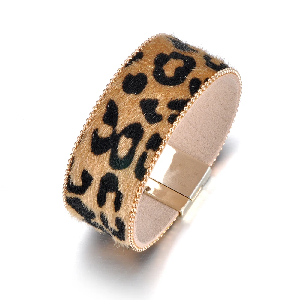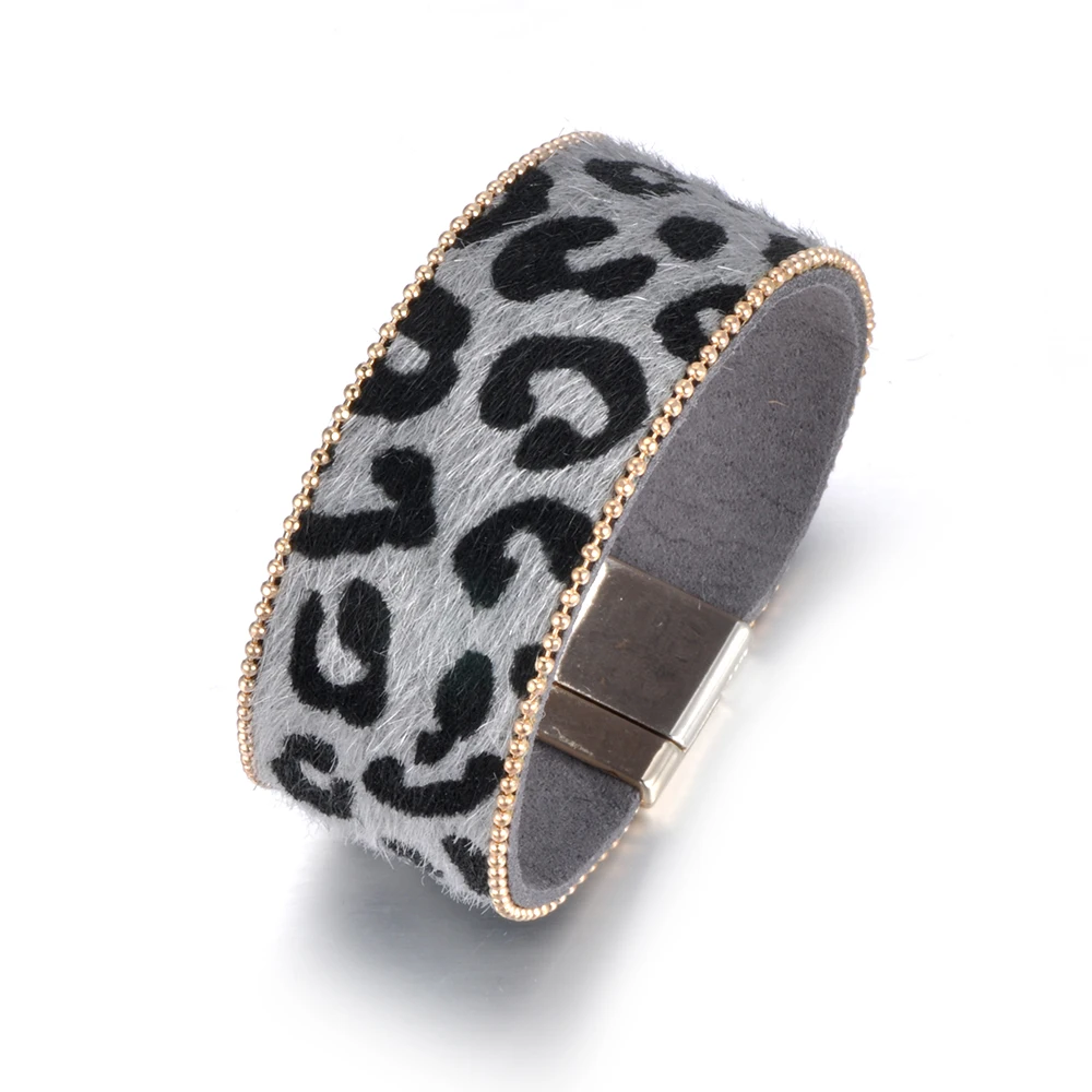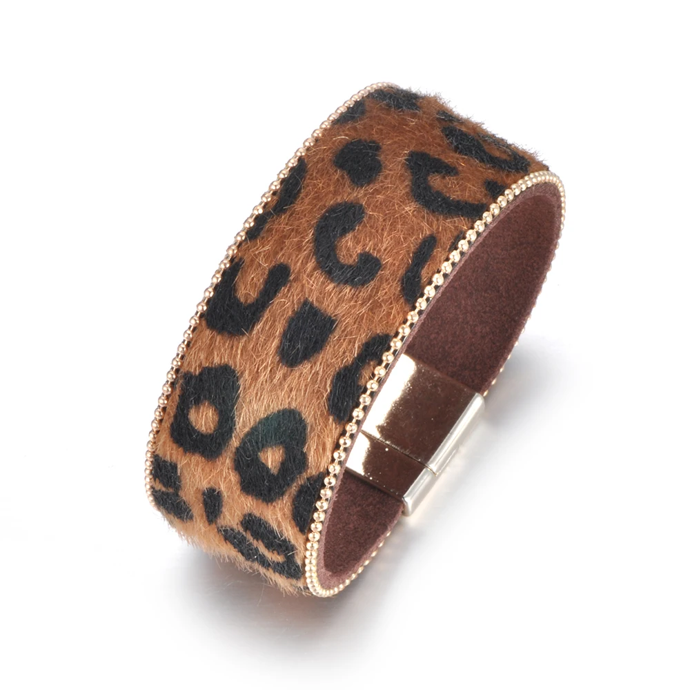 Lokaer Hot Sale Wholesale Fashion Leather Bracelet Horse Hair Leopard Print Magnet Buckle For Women Gift WRBR015