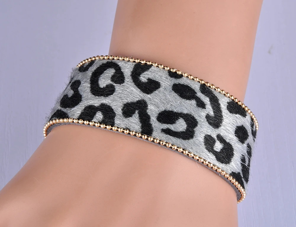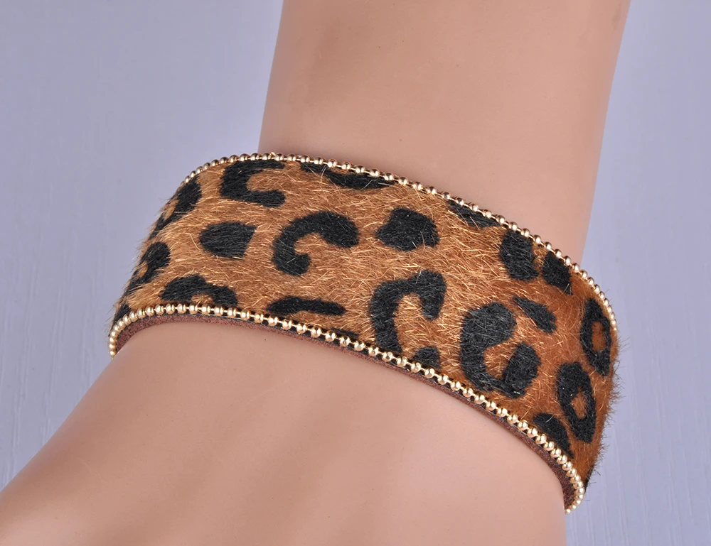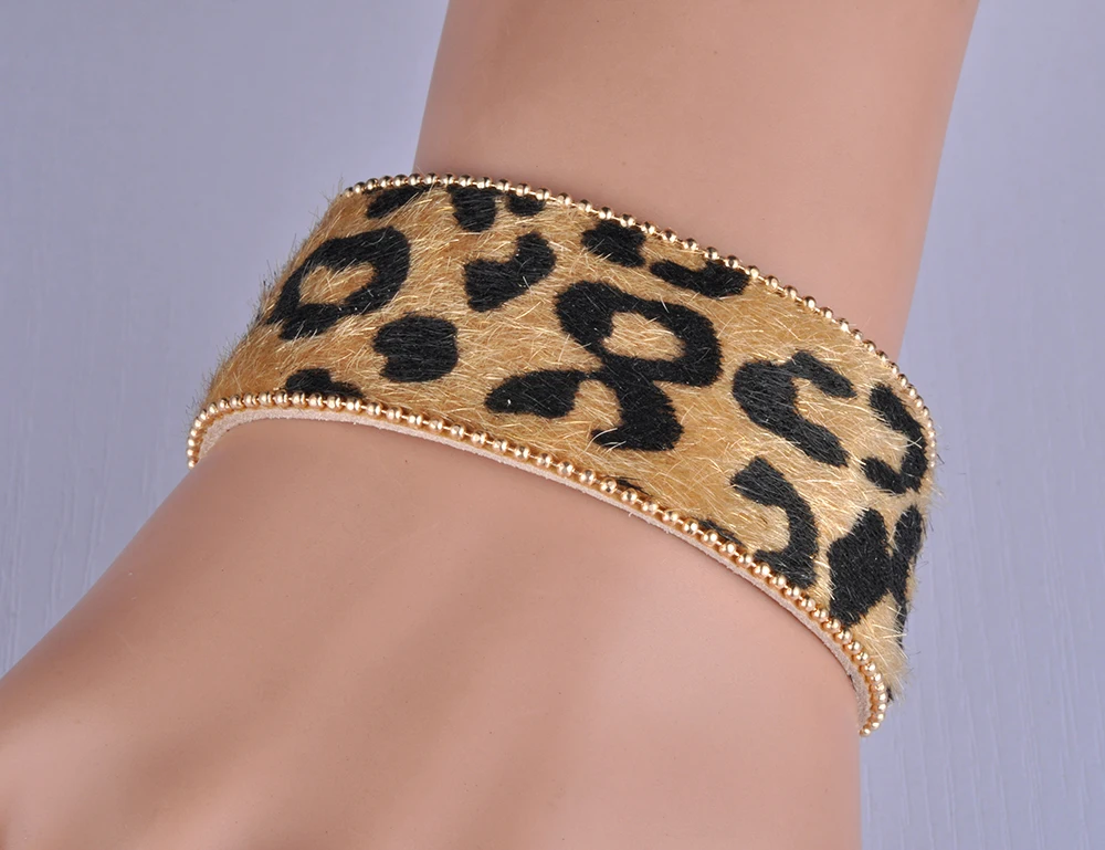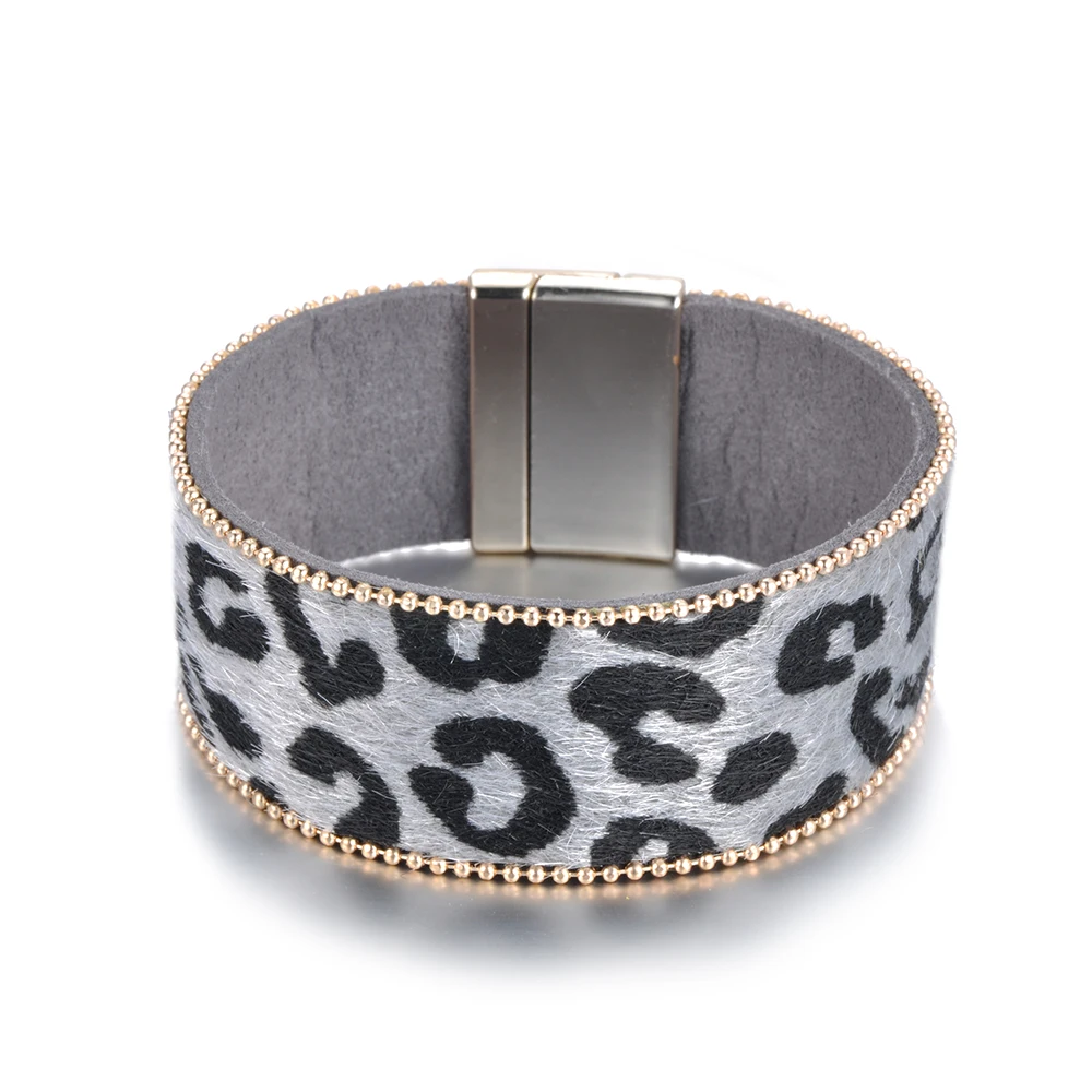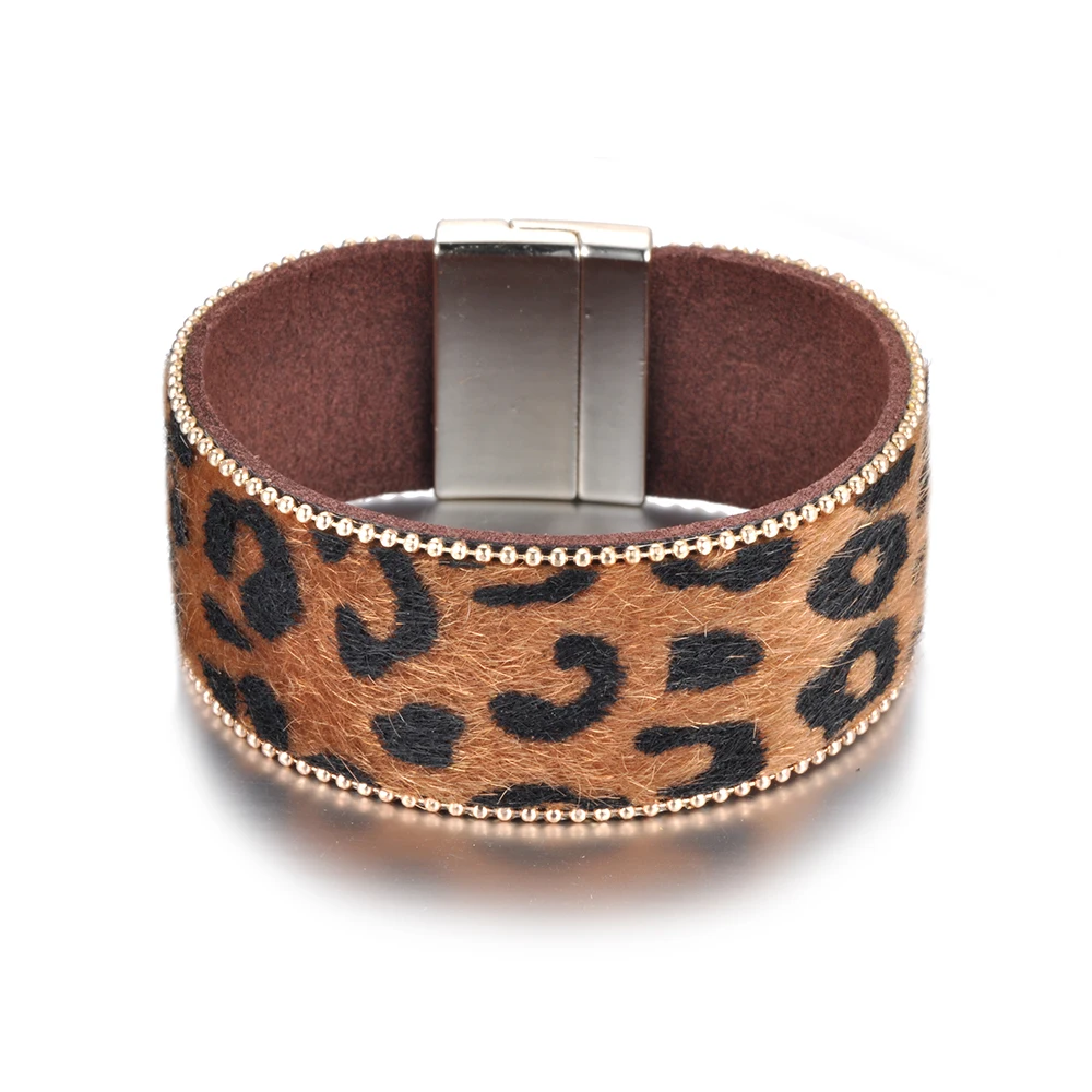 Lokaer Hot Sale Wholesale Fashion Leather Bracelet Horse Hair Leopard Print Magnet Buckle For Women Gift WRBR015