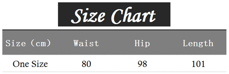 One size : Waist 80 cm ; Hip 98 cm ; Length 101 cm .