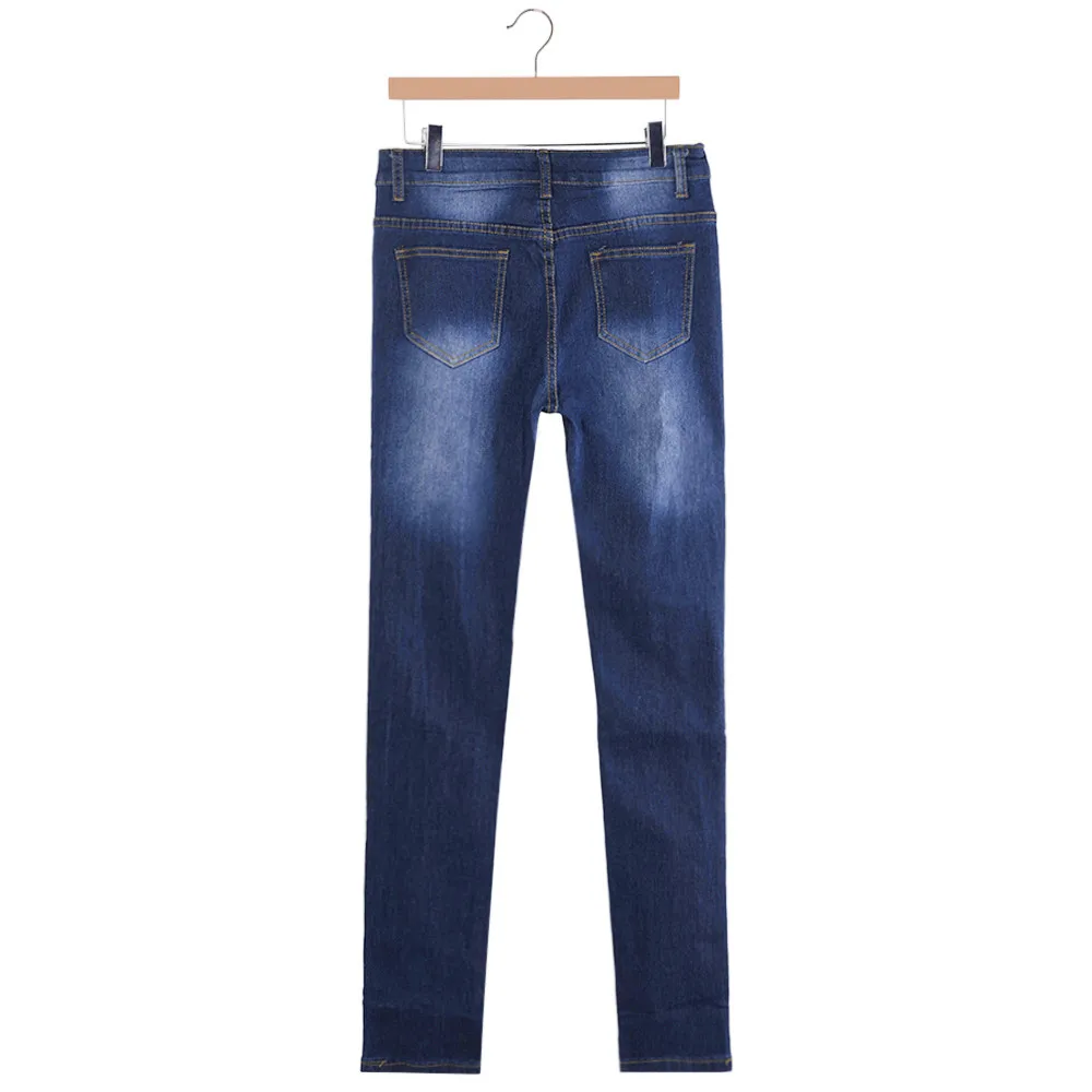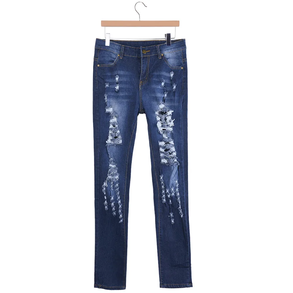 Women Slim Washed Ripped Hole Gradient Long Jeans Denim Sexy Regular Pants