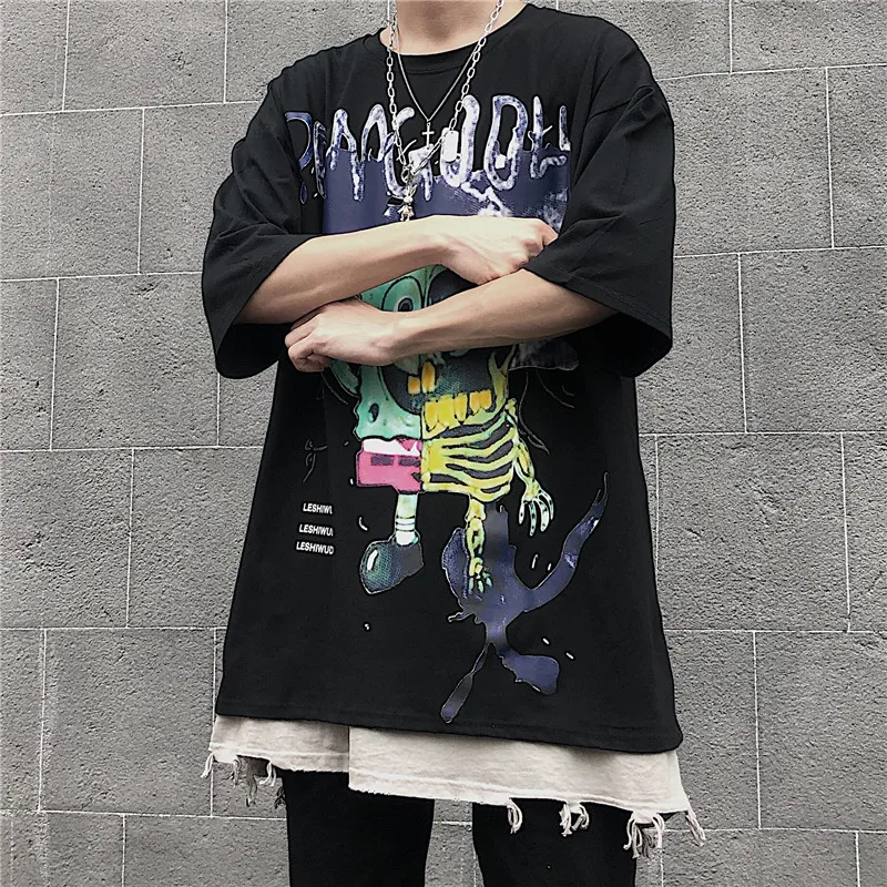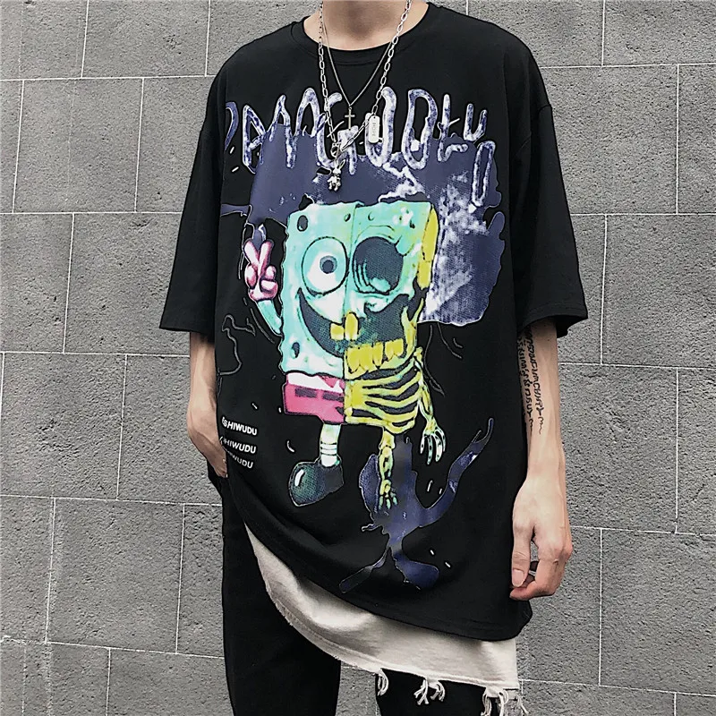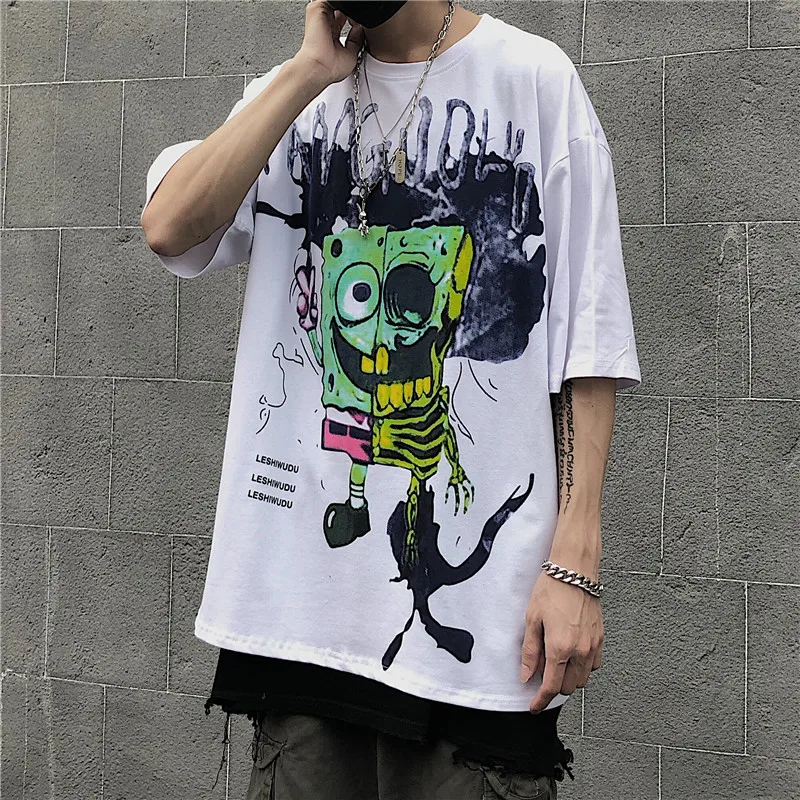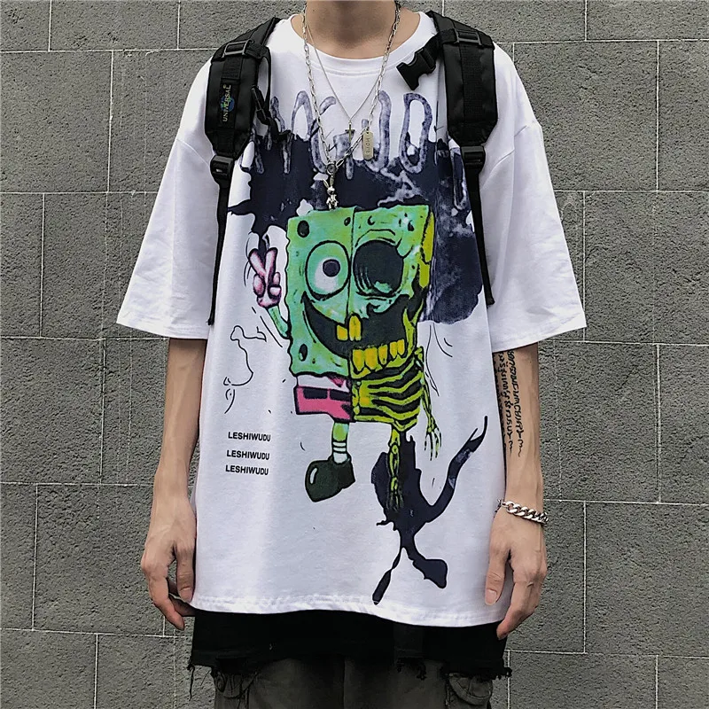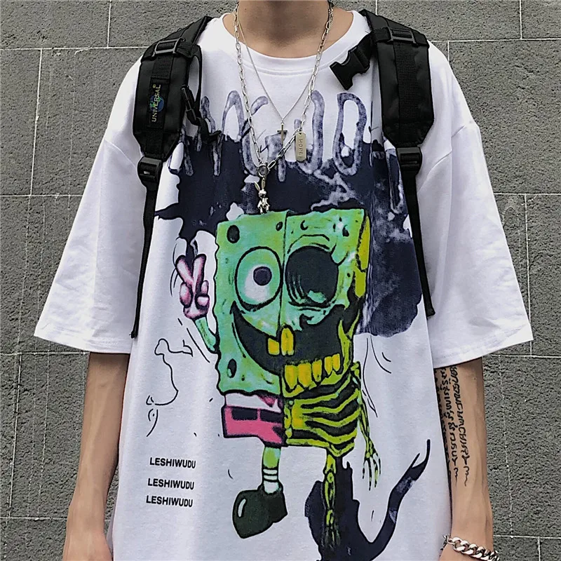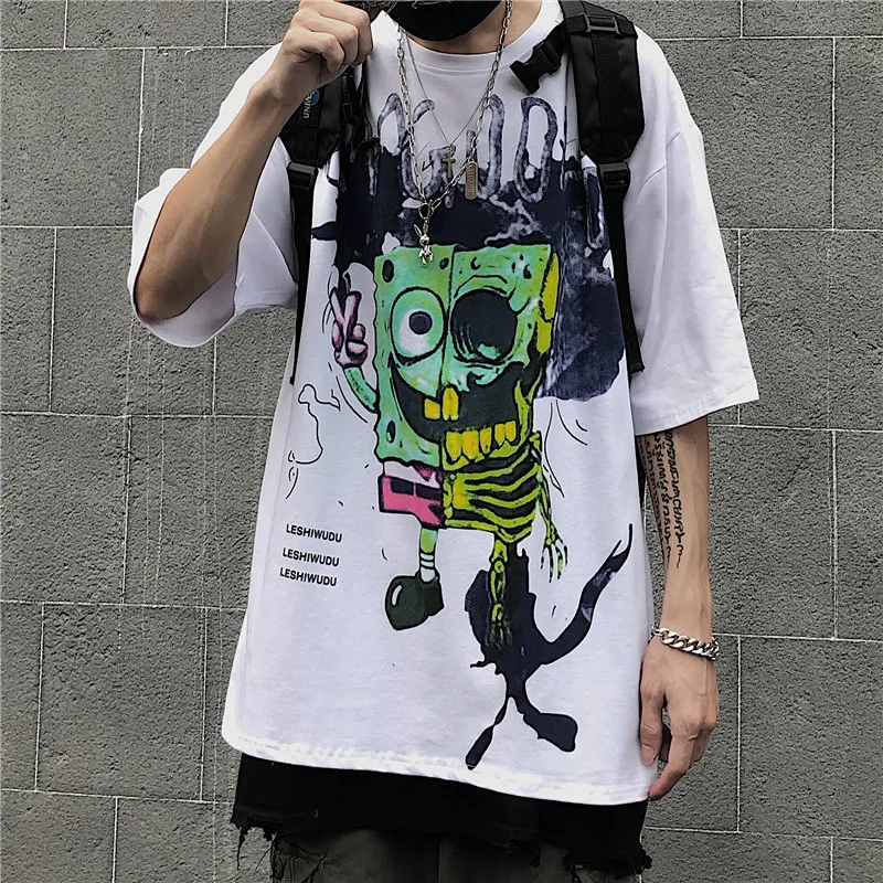 Funny Cartoon Print Woman T-shirts 2020 Summer Cool Unisex Man Hip-pop Basic T-Shirt High Street Casual Black White Rock New Top