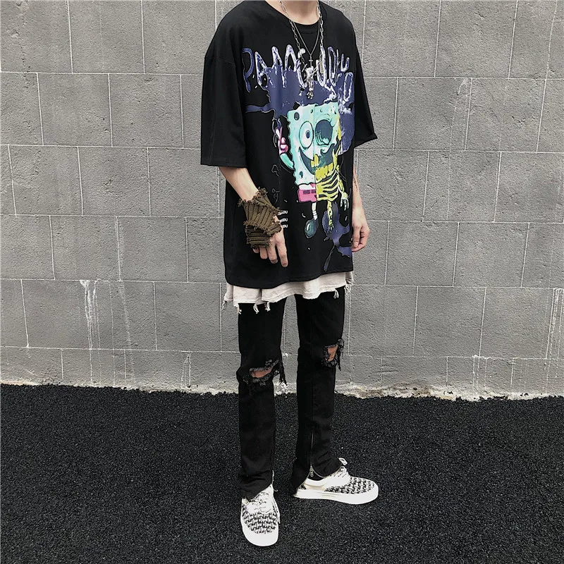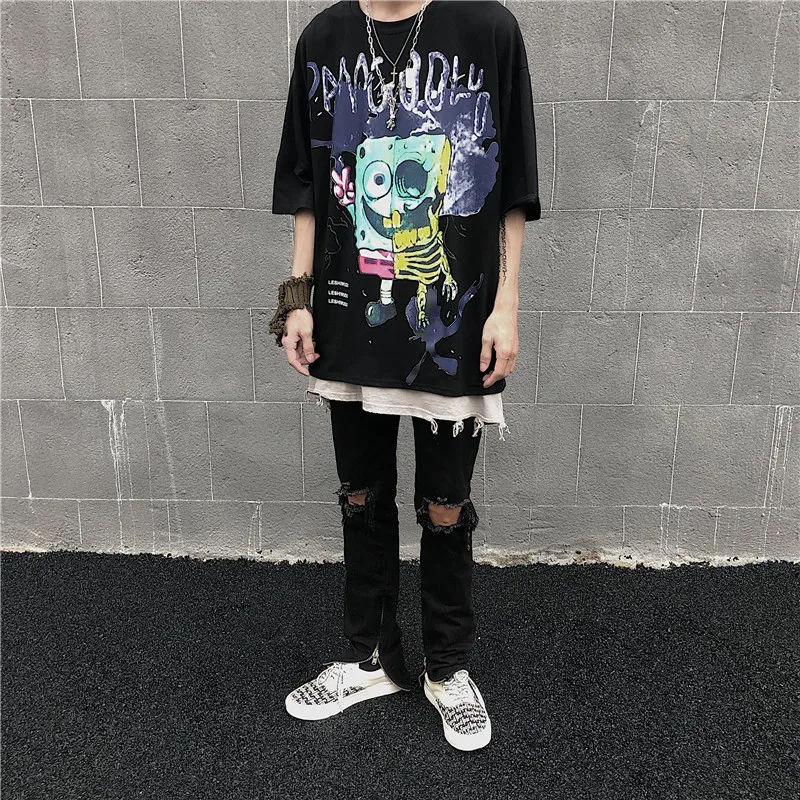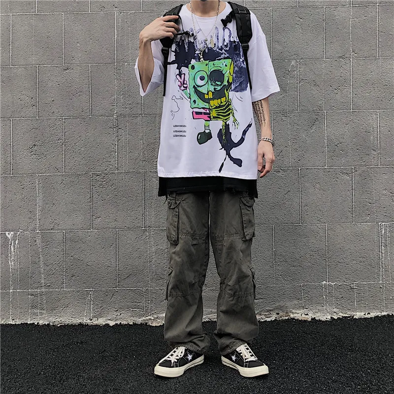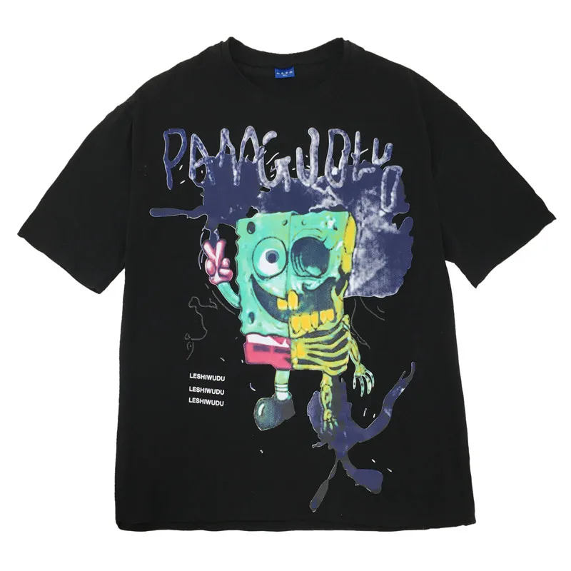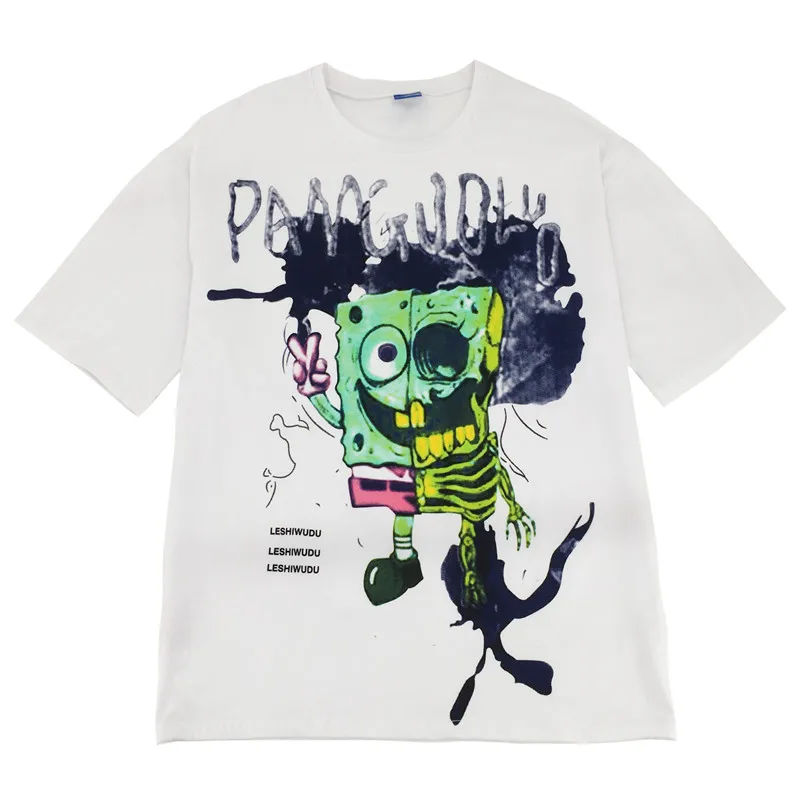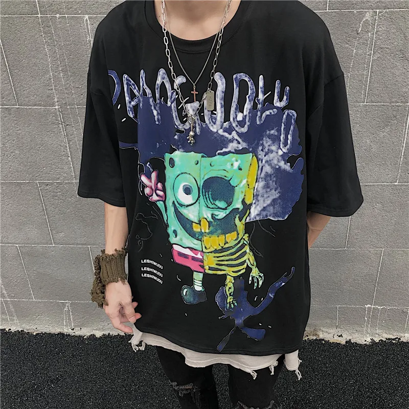Funny Cartoon Print Woman T-shirts 2020 Summer Cool Unisex Man Hip-pop Basic T-Shirt High Street Casual Black White Rock New Top