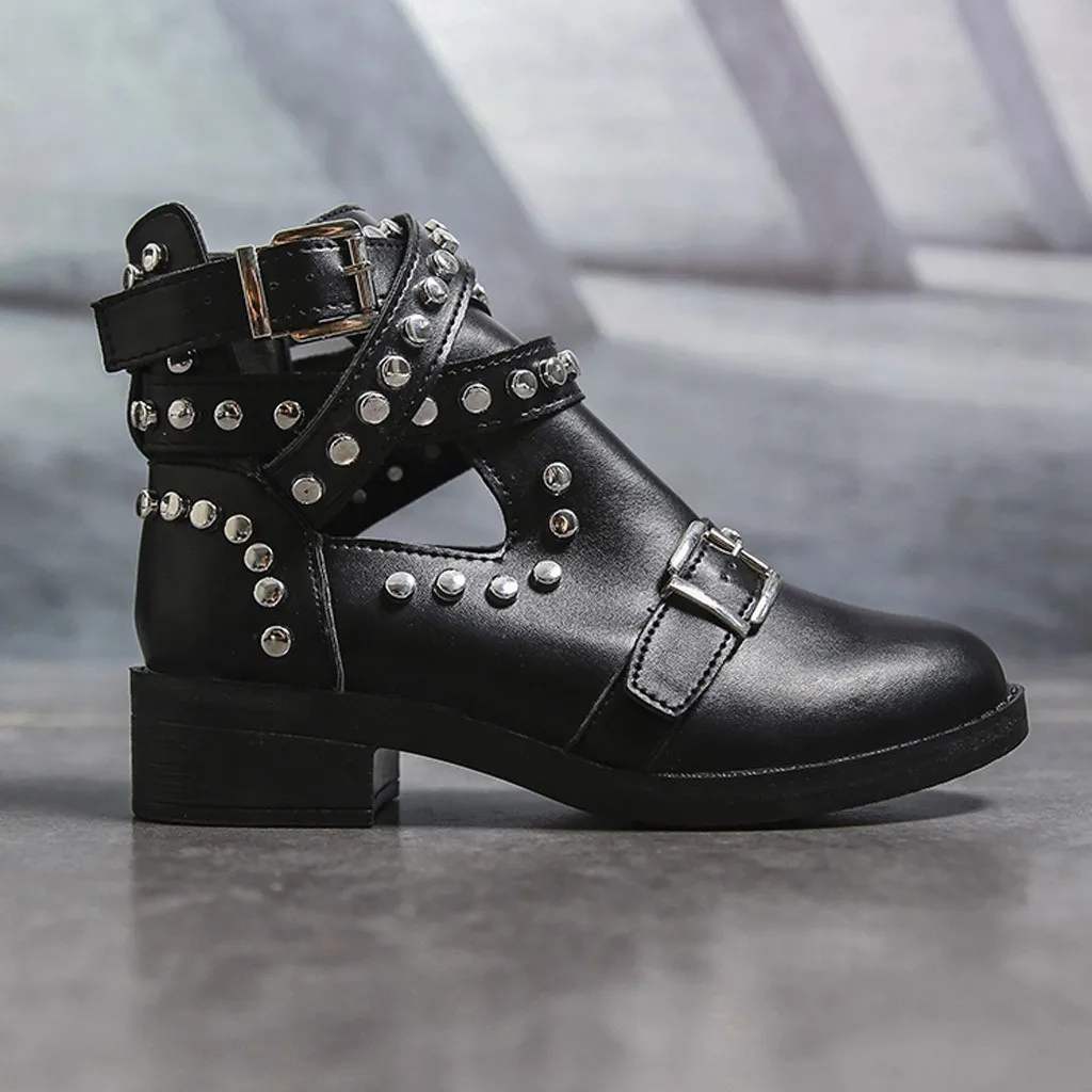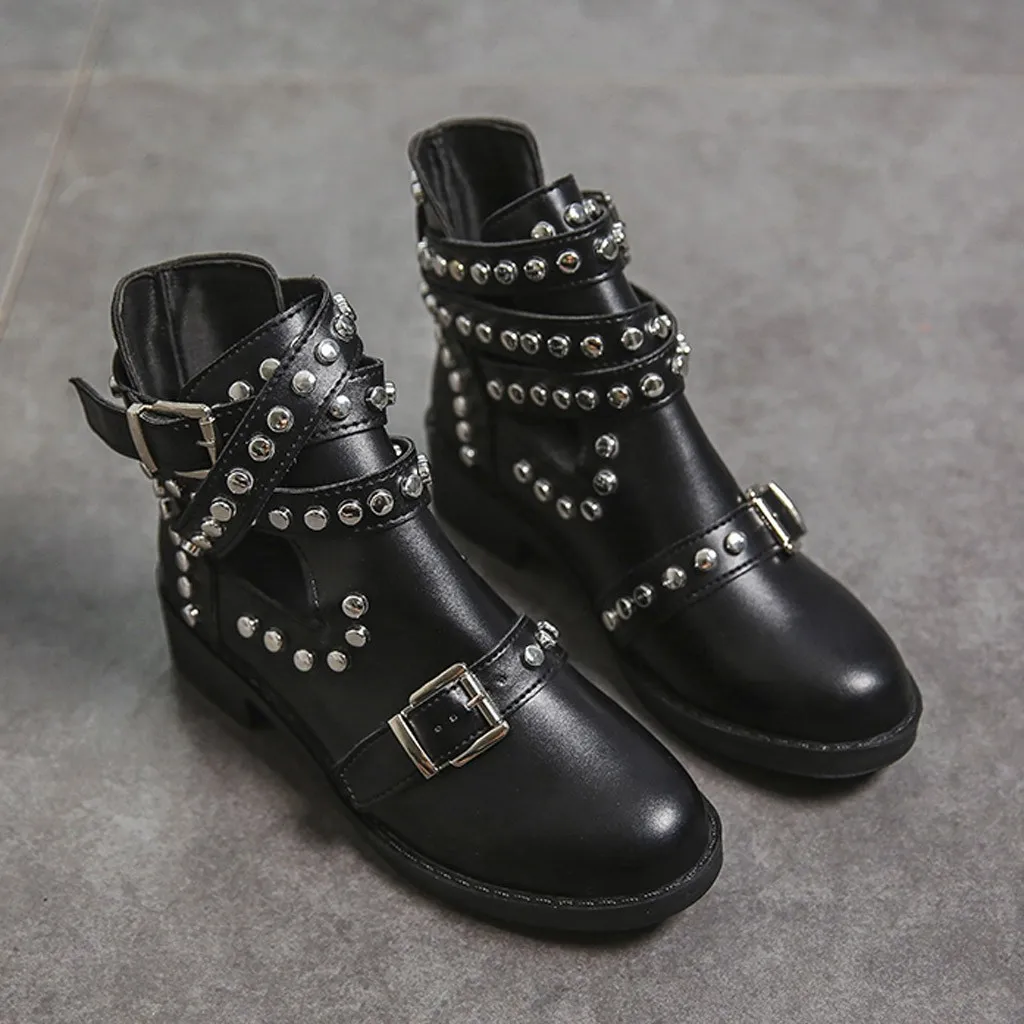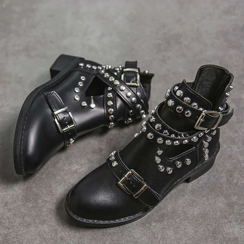 SAGACE Spring Autumn Fashion Ankle Boots For Women High Heels Casual Studs Buckle Punk Gothic Platform Shoes