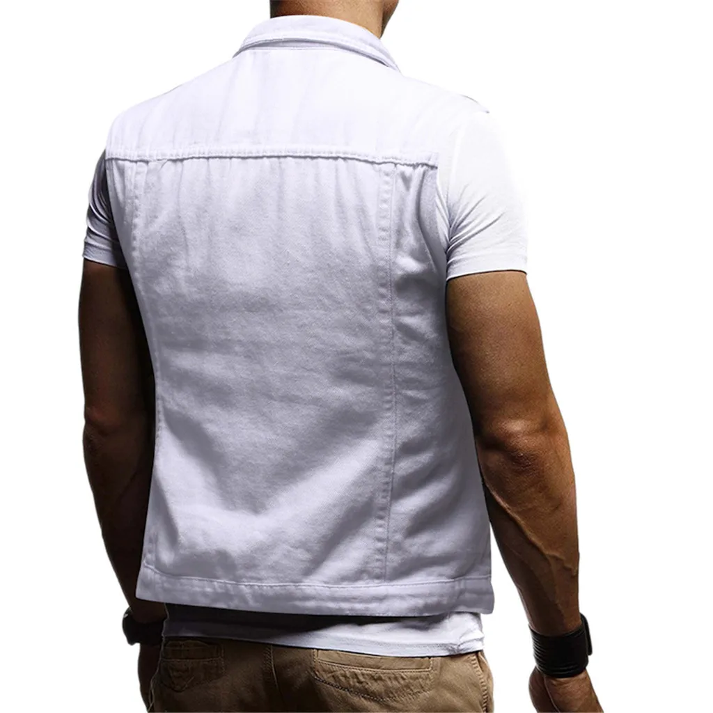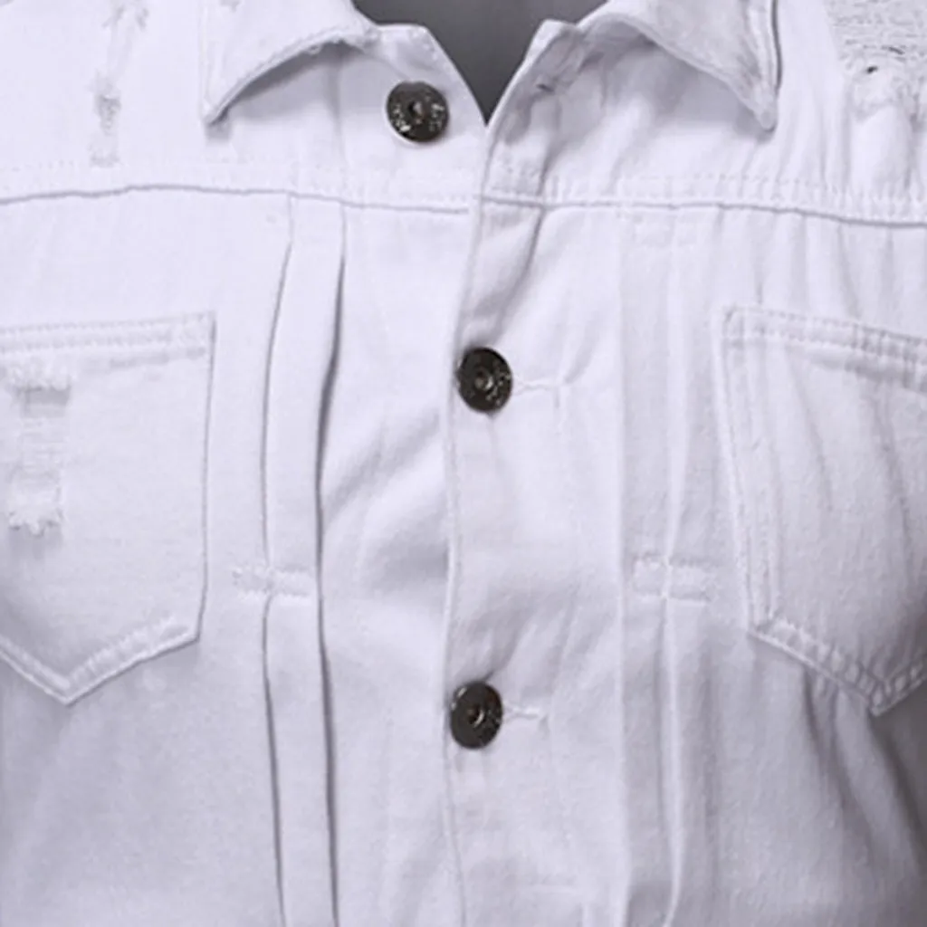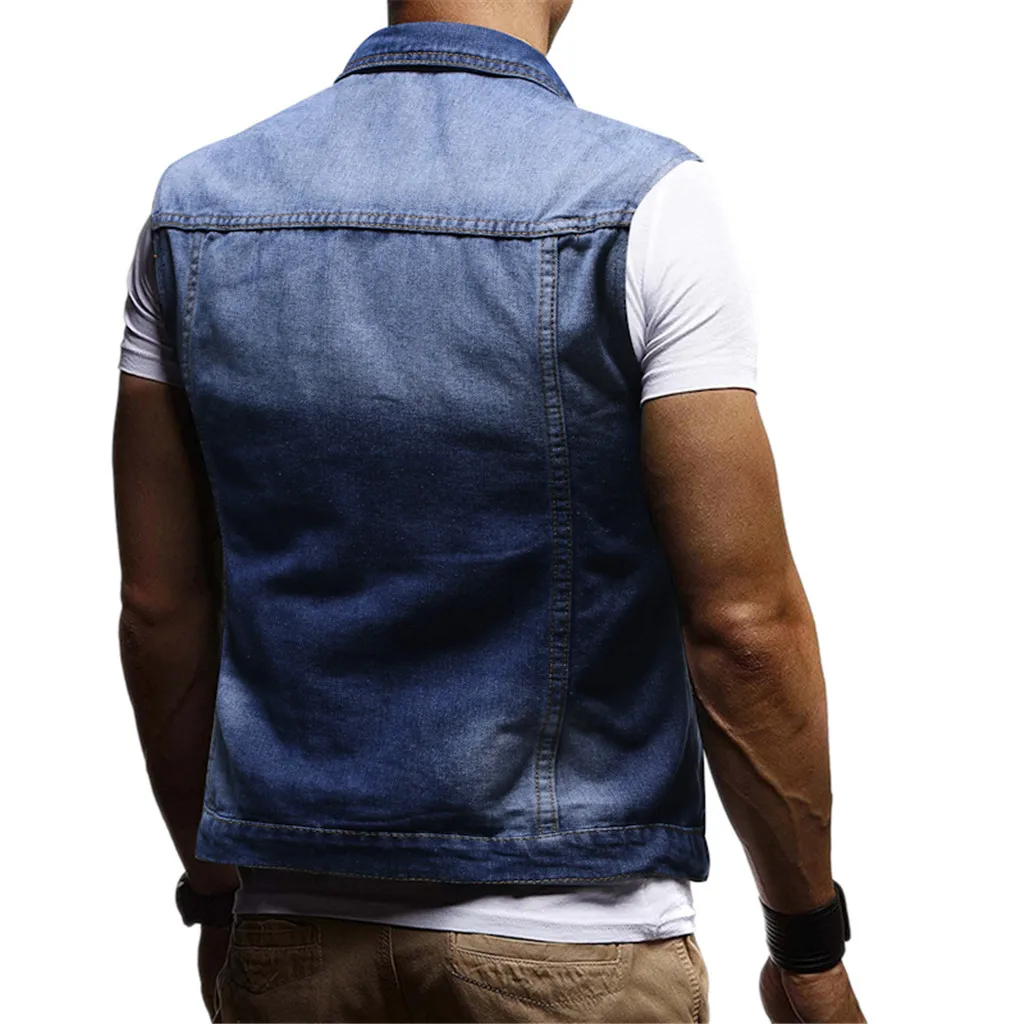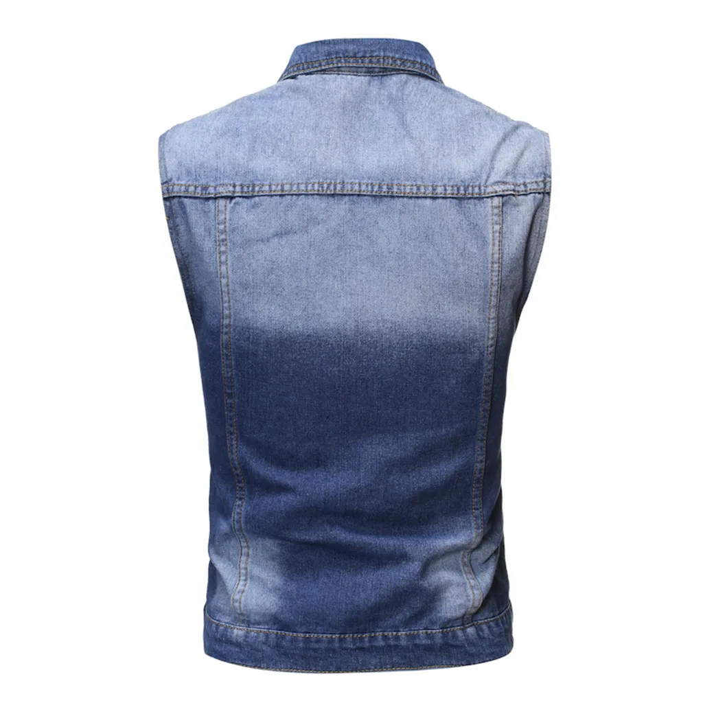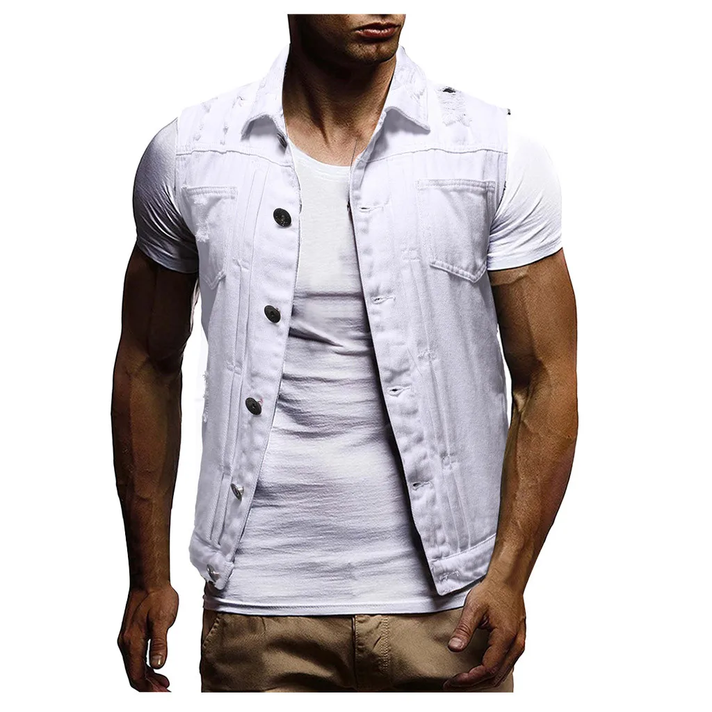 Men's Autumn Winter Destroyed Vintage Denim Jacket Waistcoat Blouse Vest Top