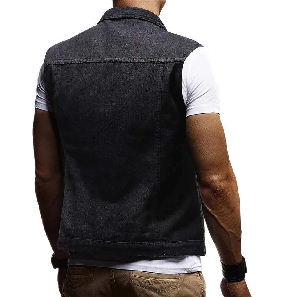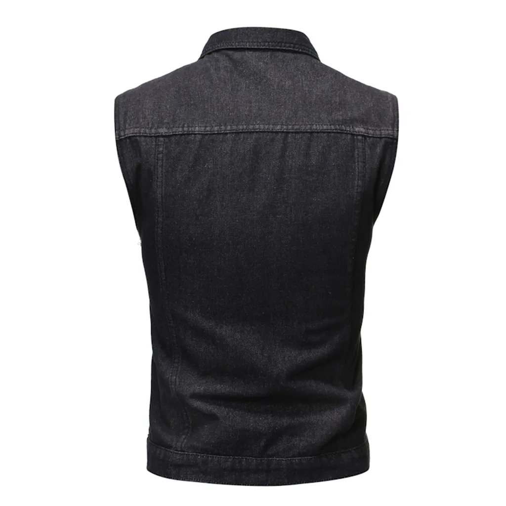 Cotton Jeans Sleeveless Jacket Vest Men Plus Size Black Denim Jeans Vest Male Cowboy Outdoors Waistcoat Men Jacket#G3
