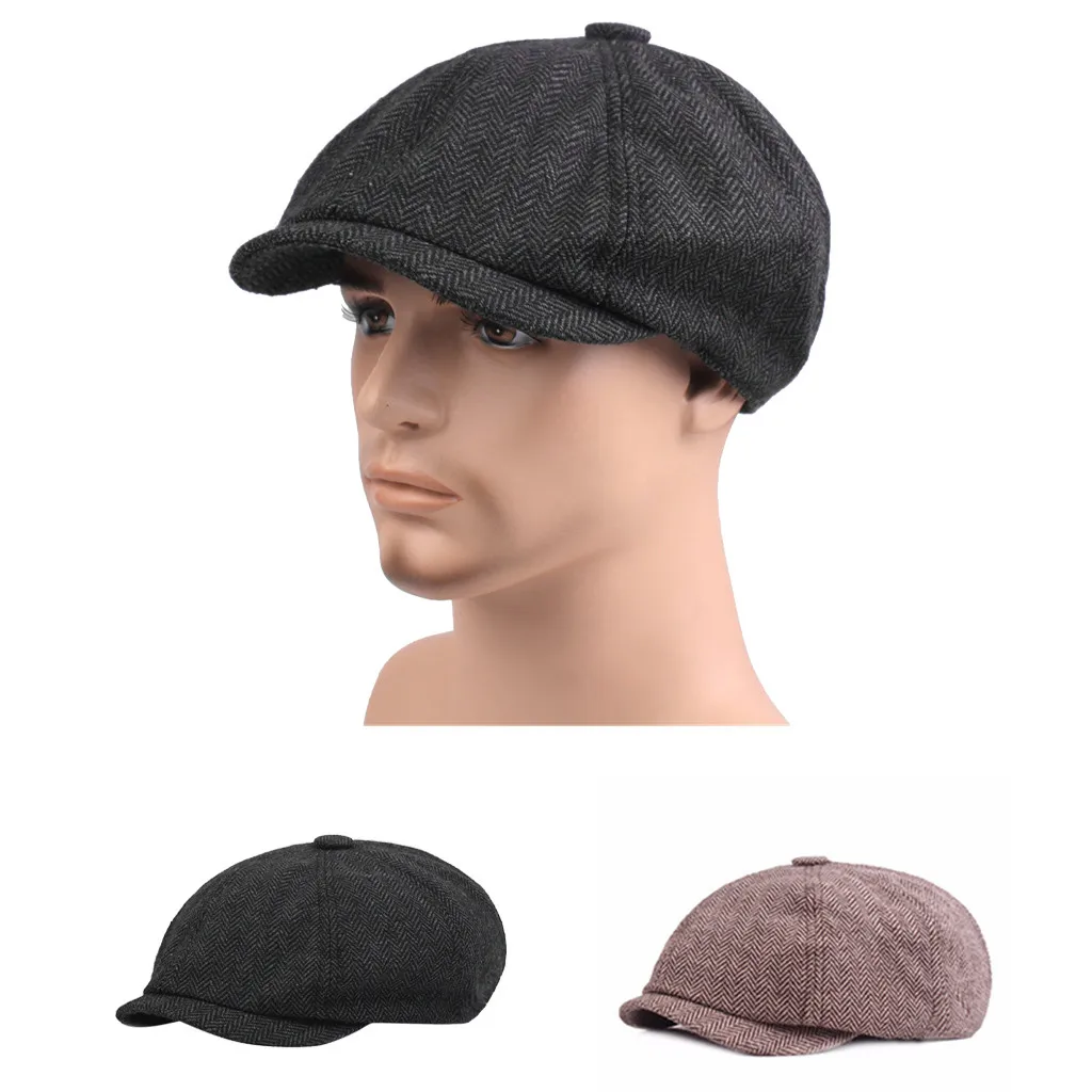 Men Wool Newsboy Caps Grey Herringbone Flat Caps Women Coffee British Gatsby Cap Autumn Winter Woolen Hats Cap #P