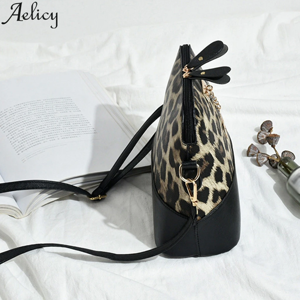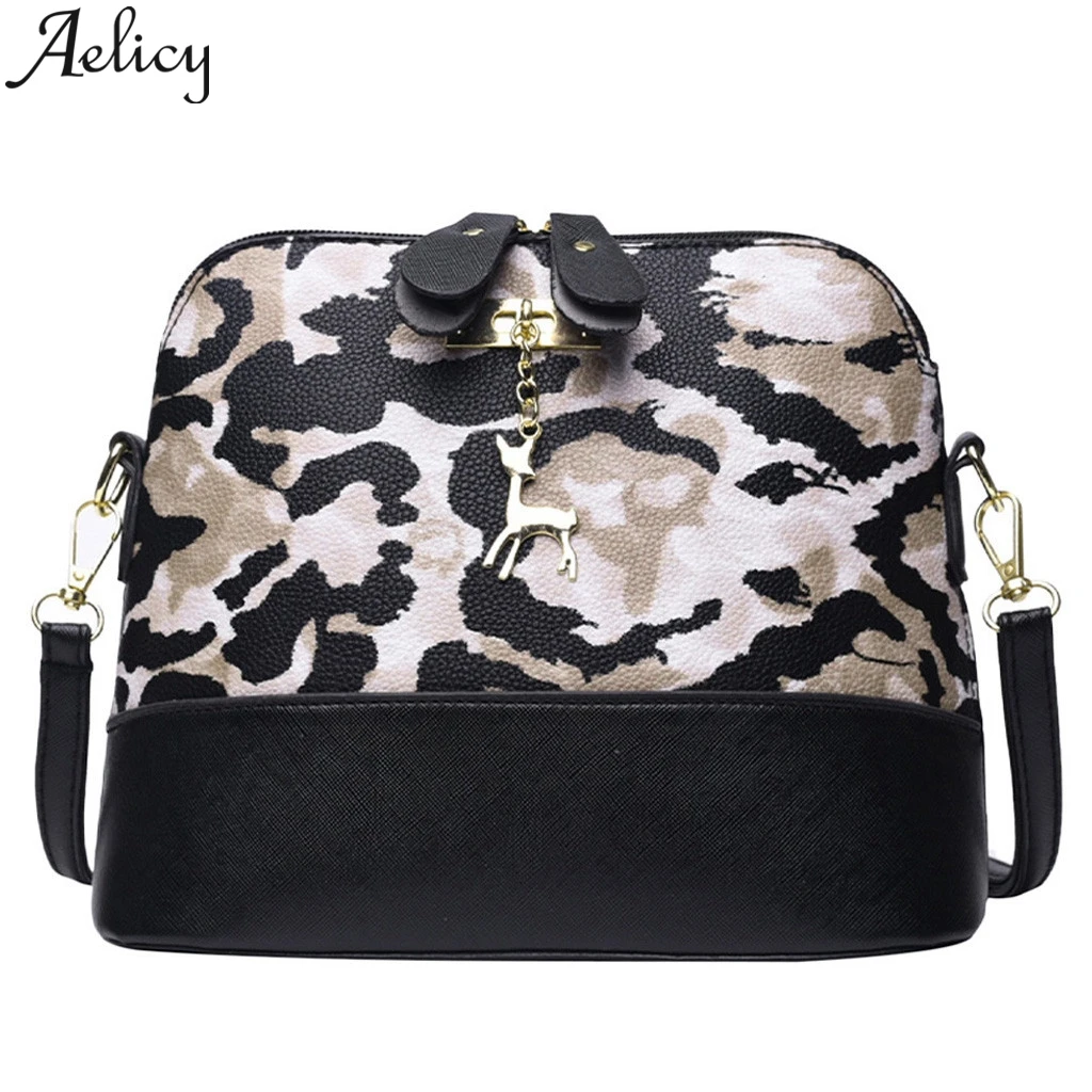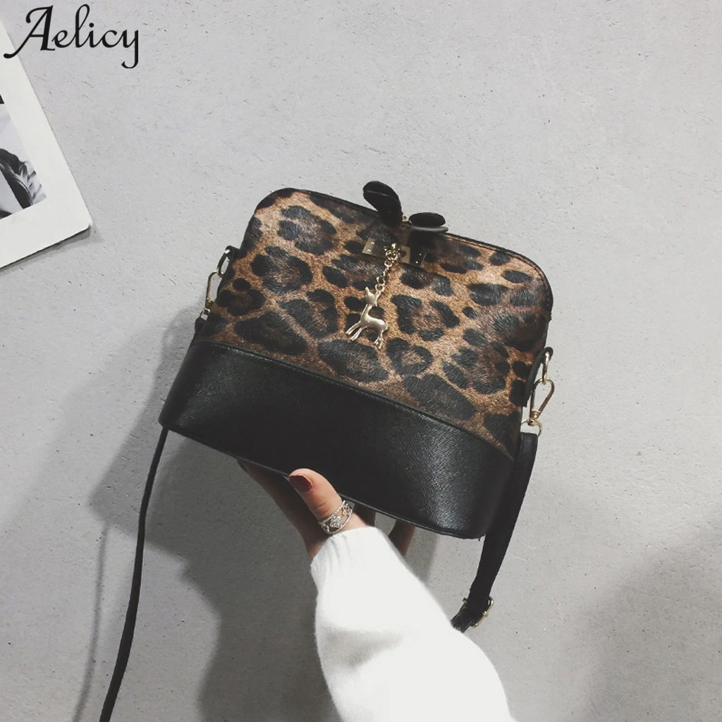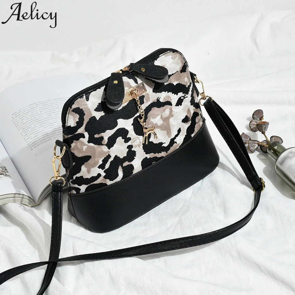 Aelicy Fashion Zipper Leopard Print Crossbody Bag Fawn Pendant Shell Leather Purse Shoulder Bag LadiesHandbag Messenger Bags