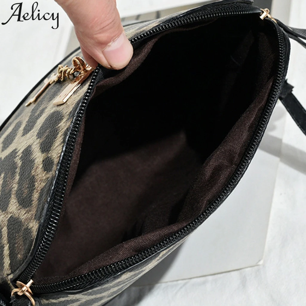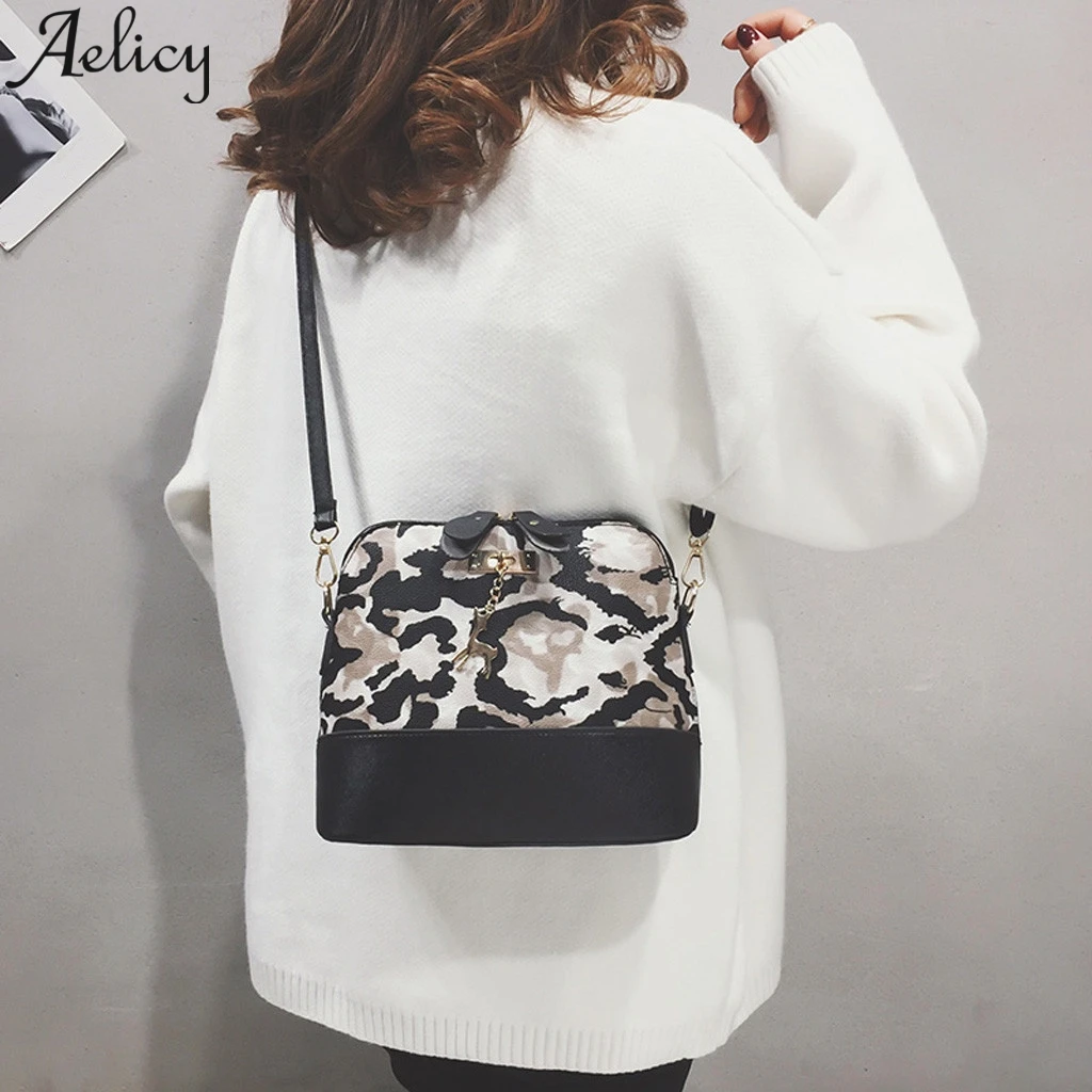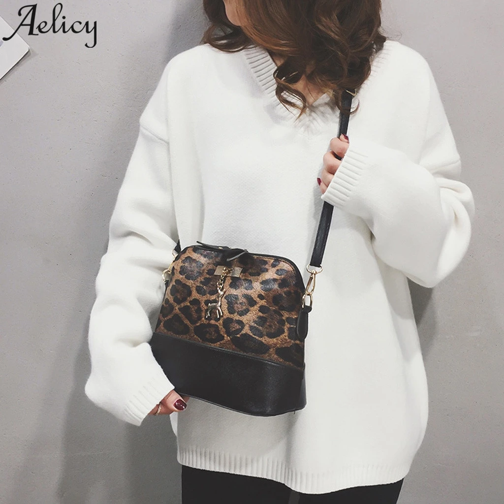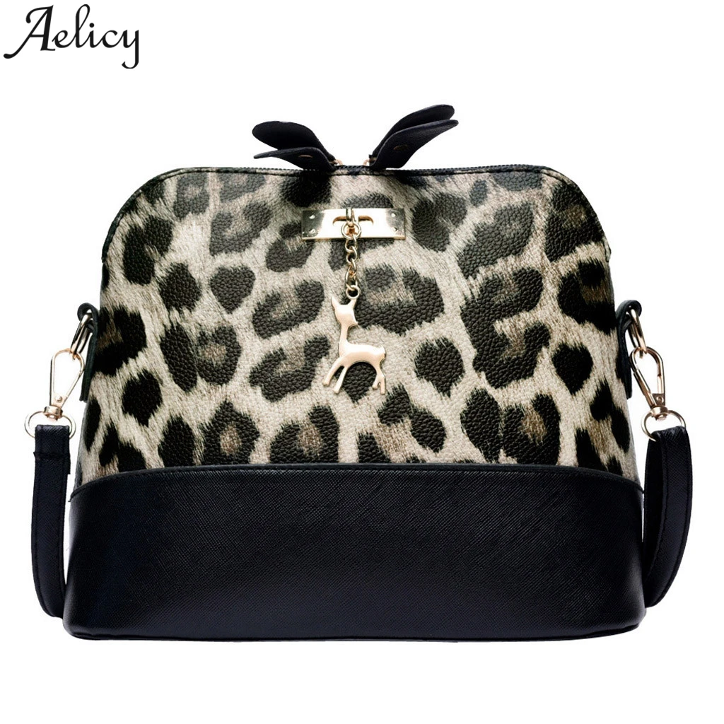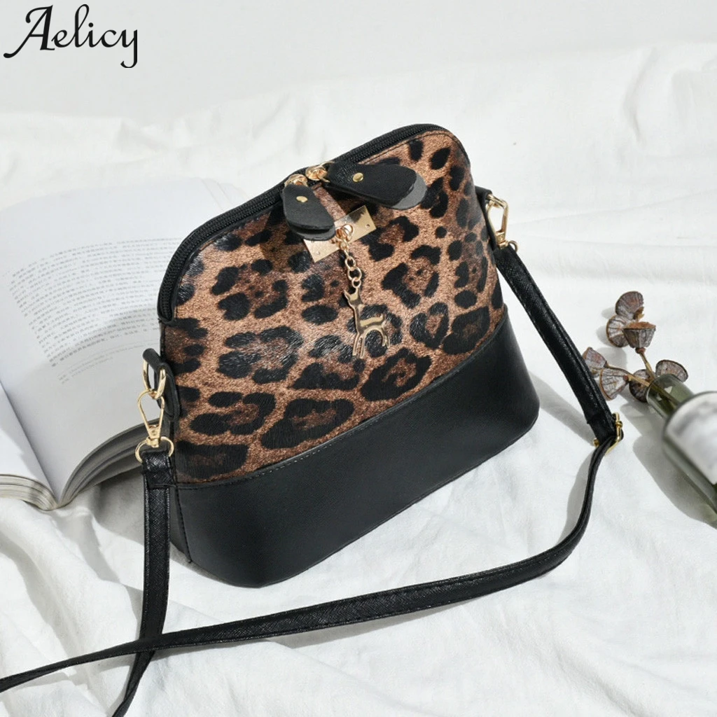 Aelicy Fashion Zipper Leopard Print Crossbody Bag Fawn Pendant Shell Leather Purse Shoulder Bag LadiesHandbag Messenger Bags