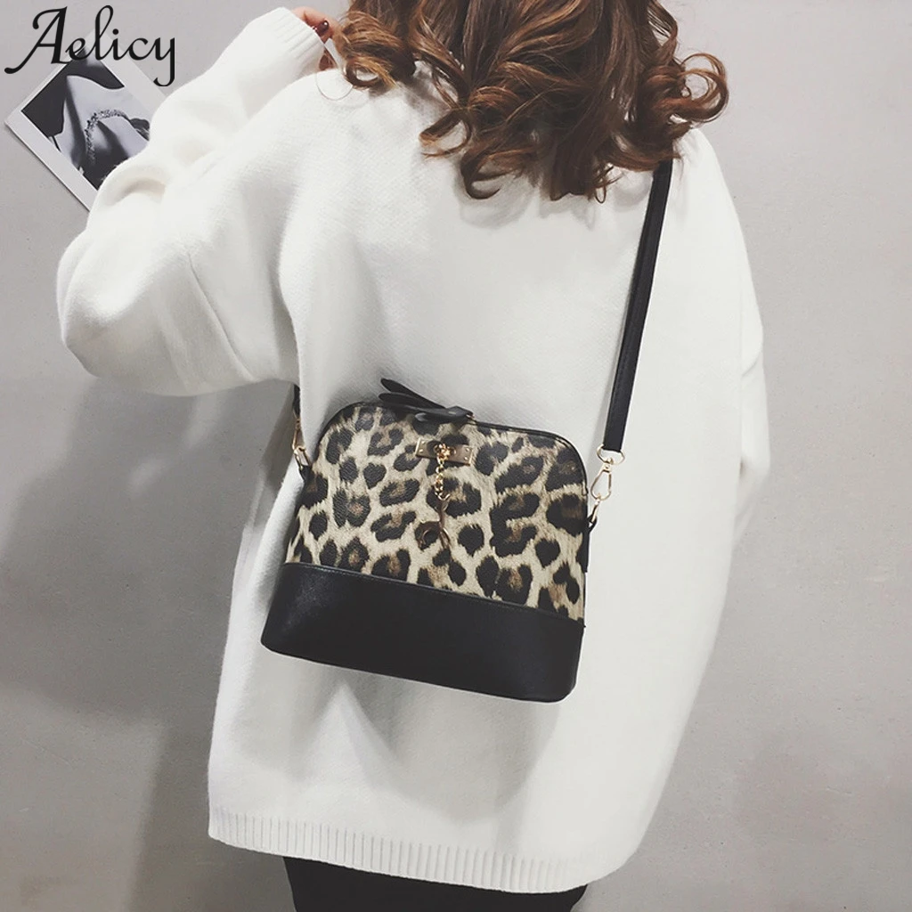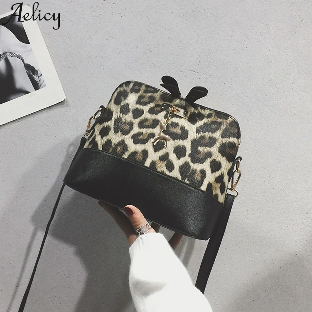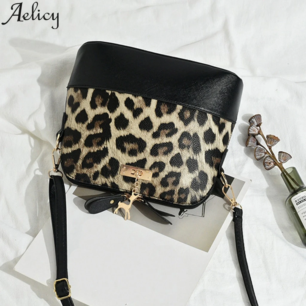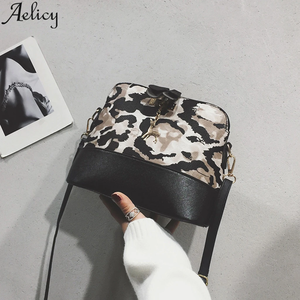 Aelicy Fashion Zipper Leopard Print Crossbody Bag Fawn Pendant Shell Leather Purse Shoulder Bag LadiesHandbag Messenger Bags