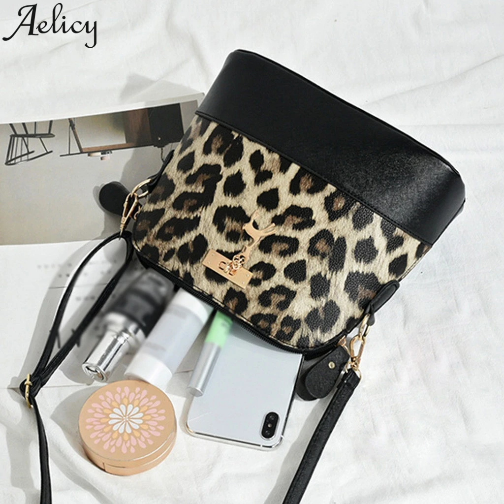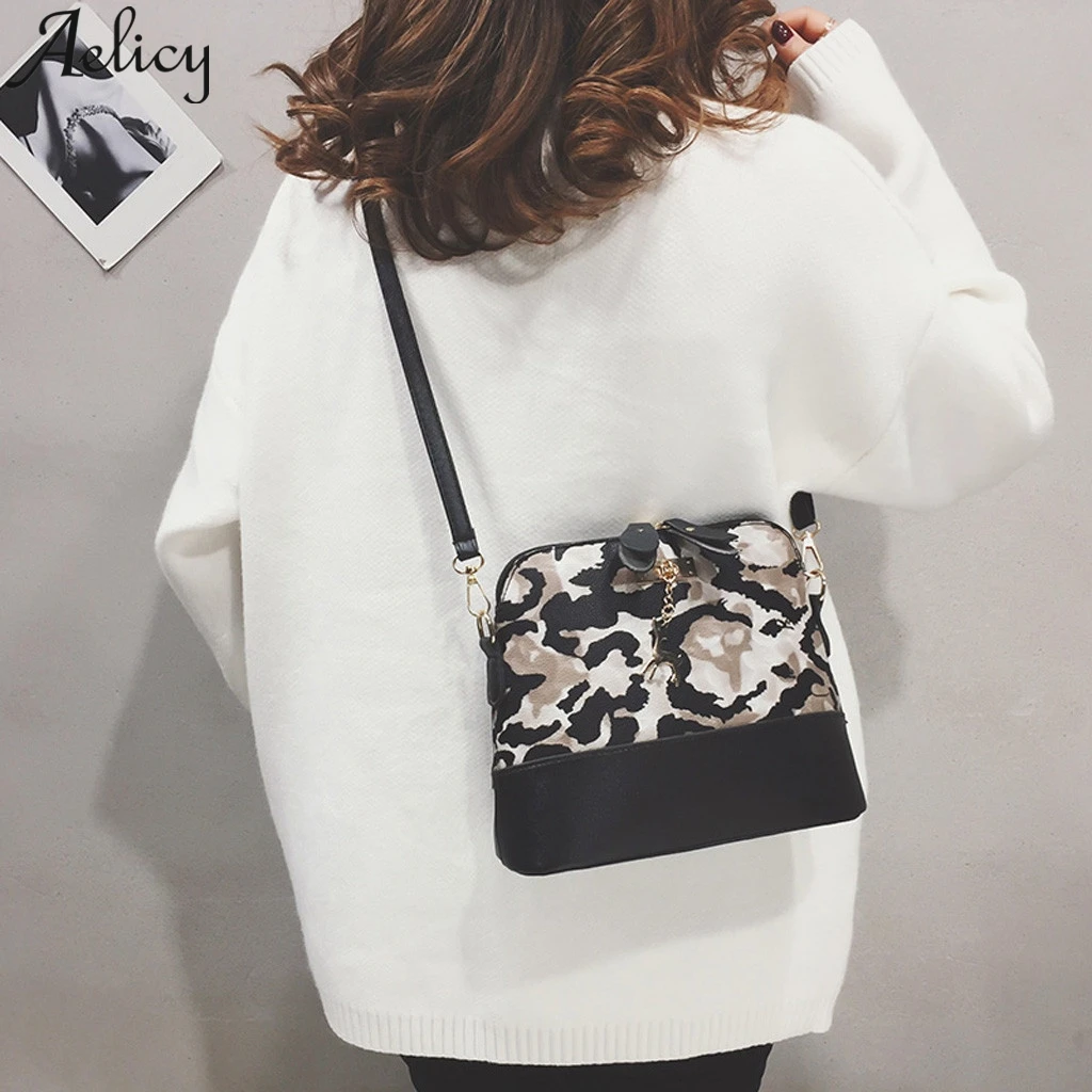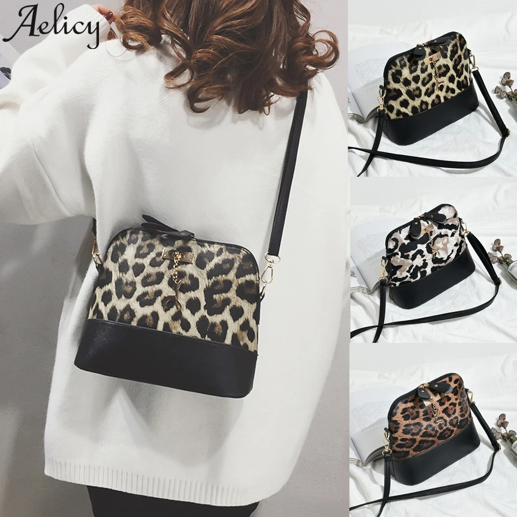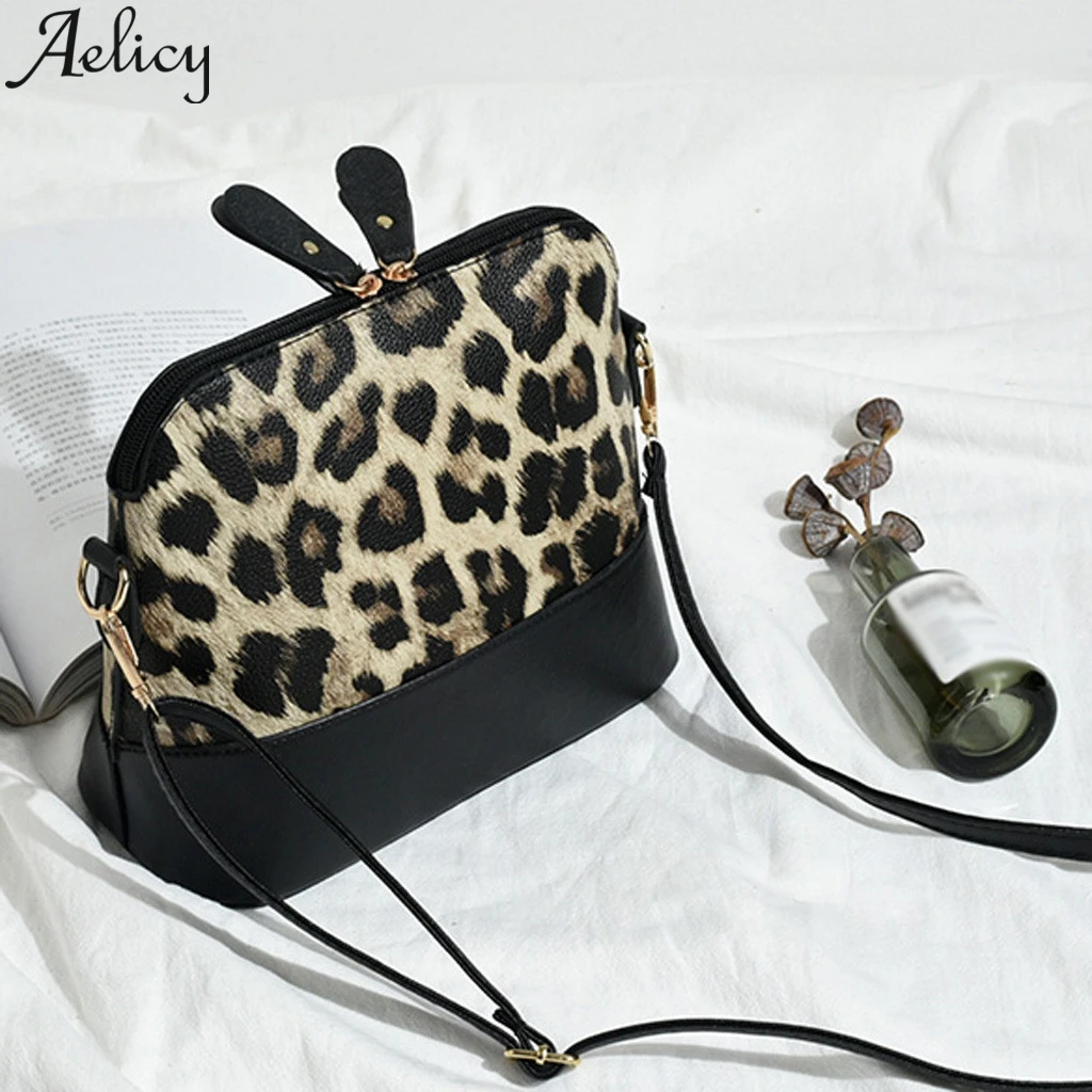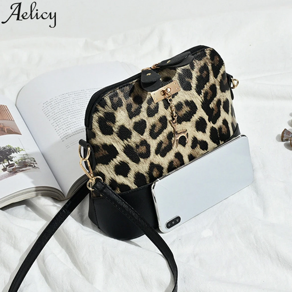 Aelicy Fashion Zipper Leopard Print Crossbody Bag Fawn Pendant Shell Leather Purse Shoulder Bag LadiesHandbag Messenger Bags