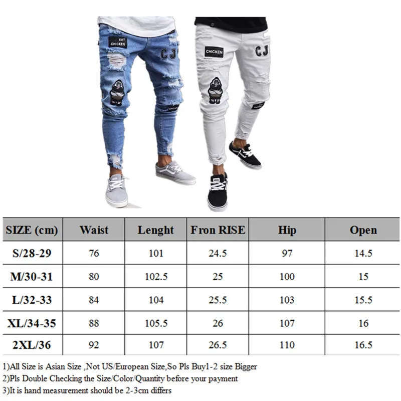 Often follow the store to become a fan Will get more discounts Stores are about to push fan discounts Quality is the first with best service. customers all are our friends. Fashion design,100% Brand New, high quality! Material: Jean fabric Color: As picture show Size: S M L XL 2XL 3XL There is 2-3% difference according to manual measurement. please check the measurement chart carefully before you buy the item. 1 inch = 2.54 cm Please note that slight color difference should be acceptable due to the light and screen. Please kindly note that: our itemis Asia size, run much small,please order 1 -2 size up,or please confiorm the measurement before choose size. What You Get: 1 x men's jeans