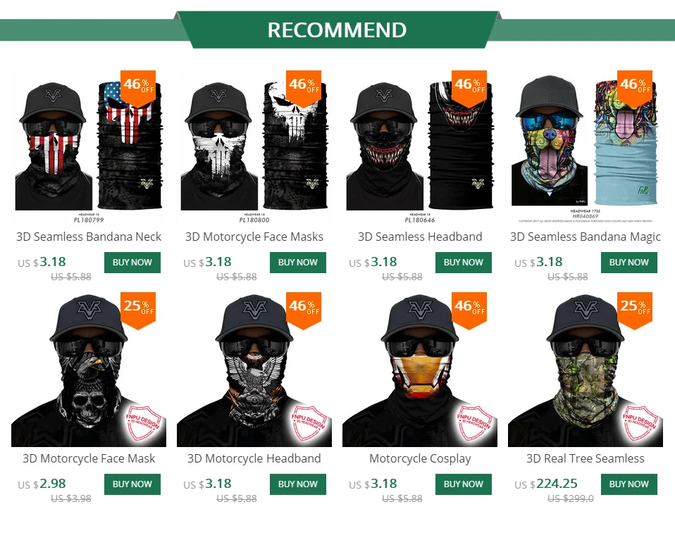 3D Seamless Bandana V vendetta Magic Scarf Neck Buffe Skull Death Hulk Motorcycle Hiking Fishing Face Mask Outdoors Ski Headband