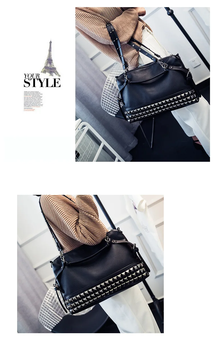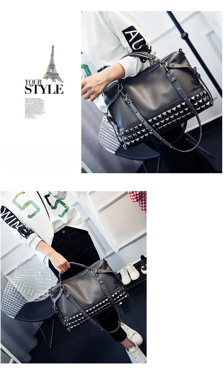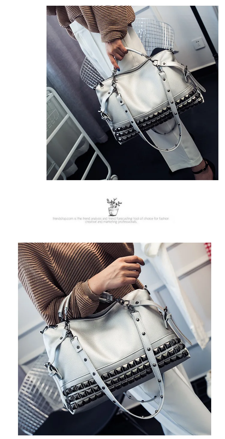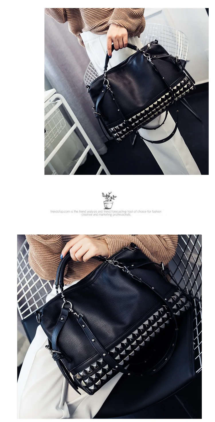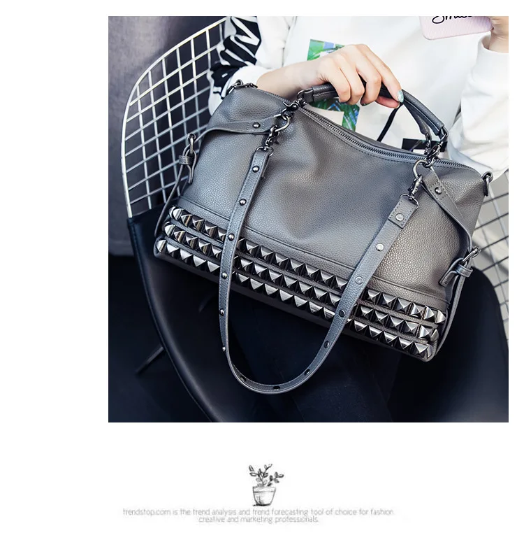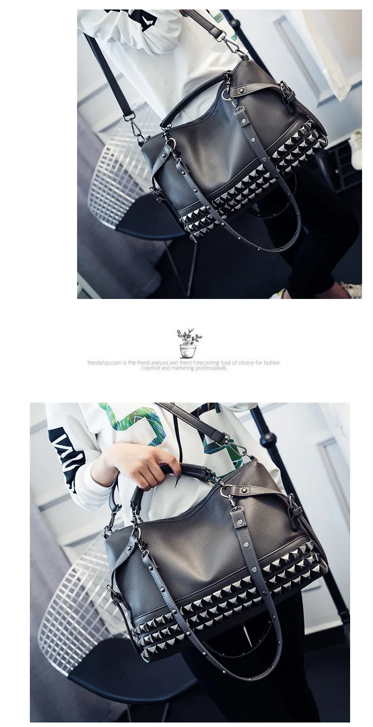 2020 new women's bag PU leather solid color lychee pattern large capacity rivet bag shoulder diagonal shoulder bag punk bag