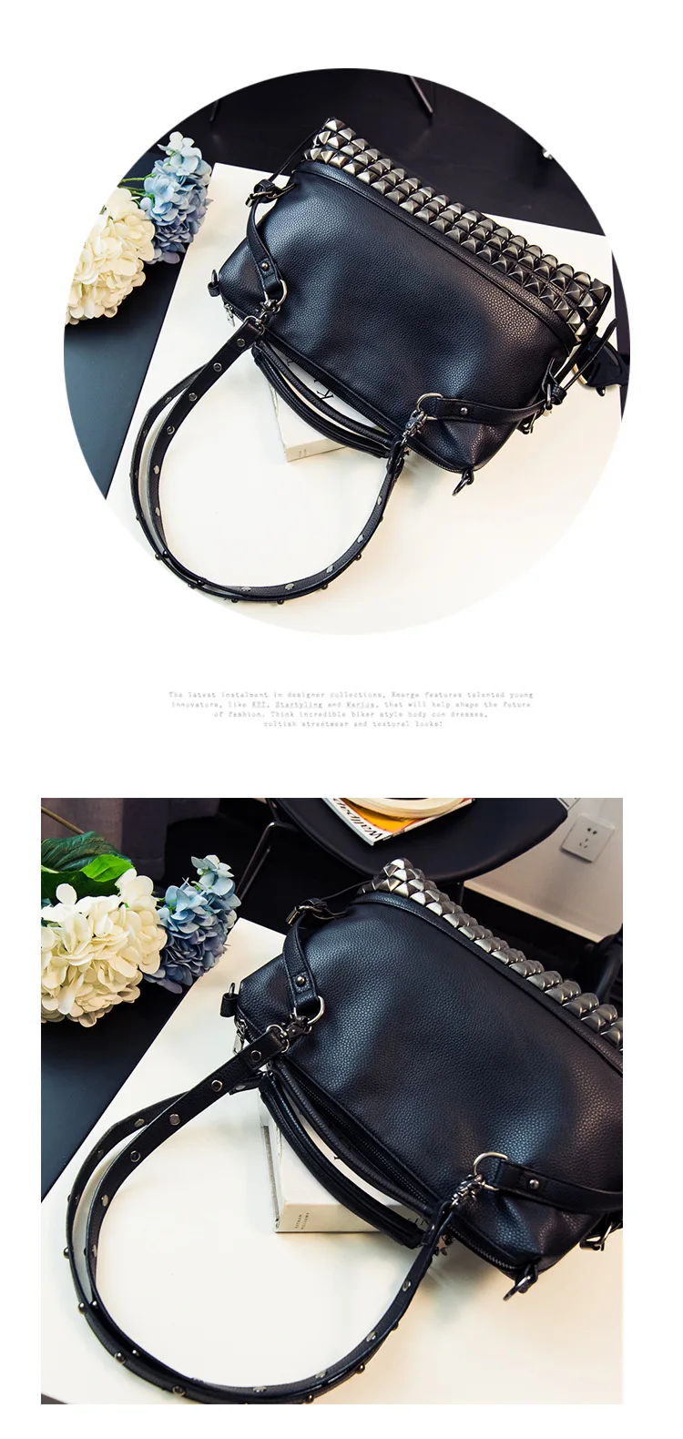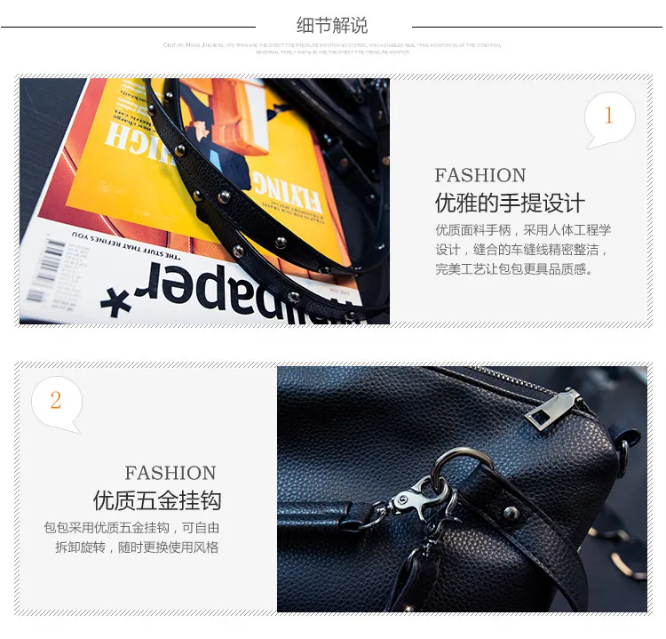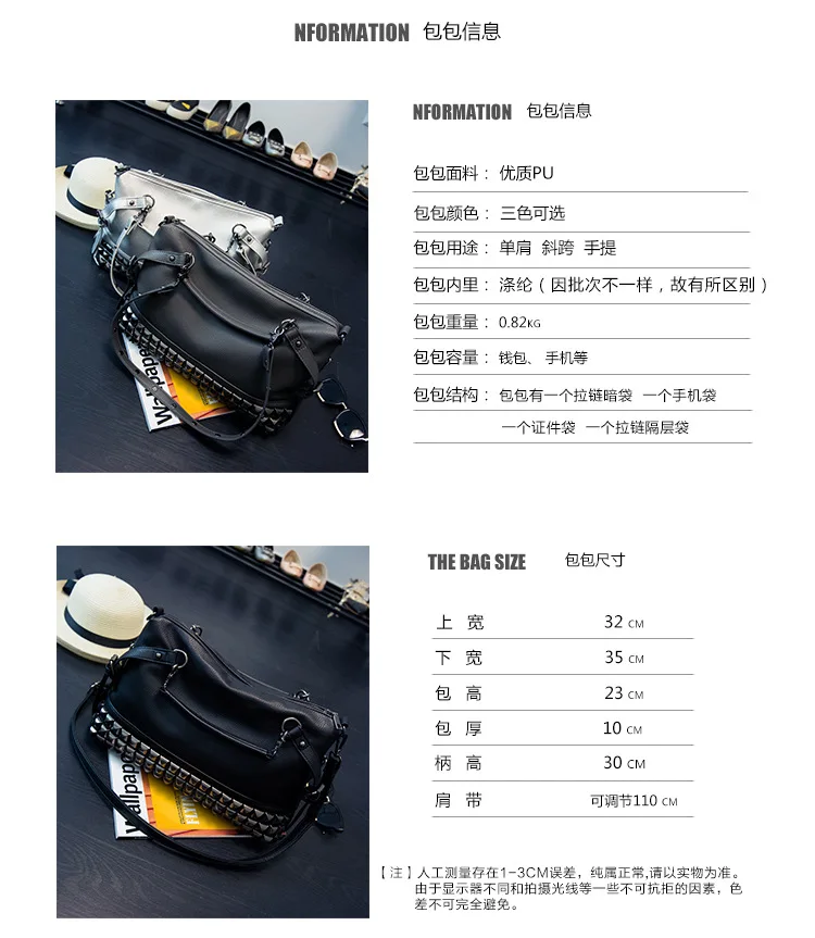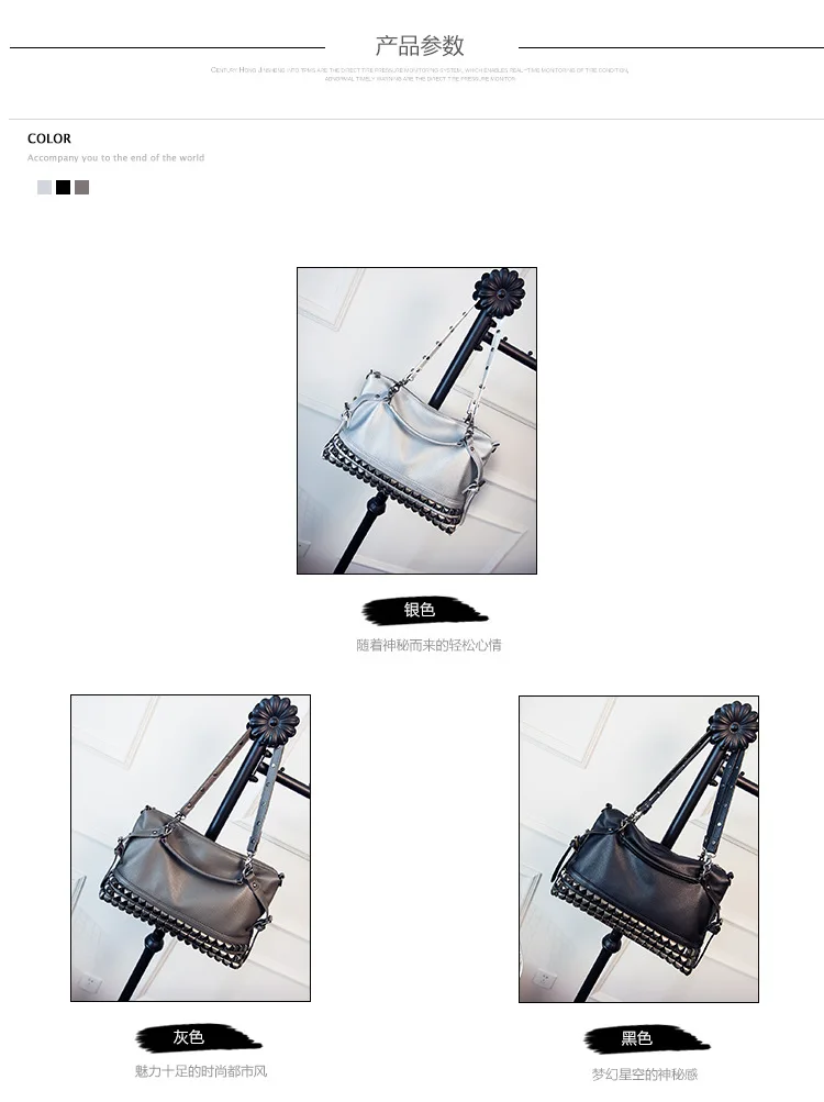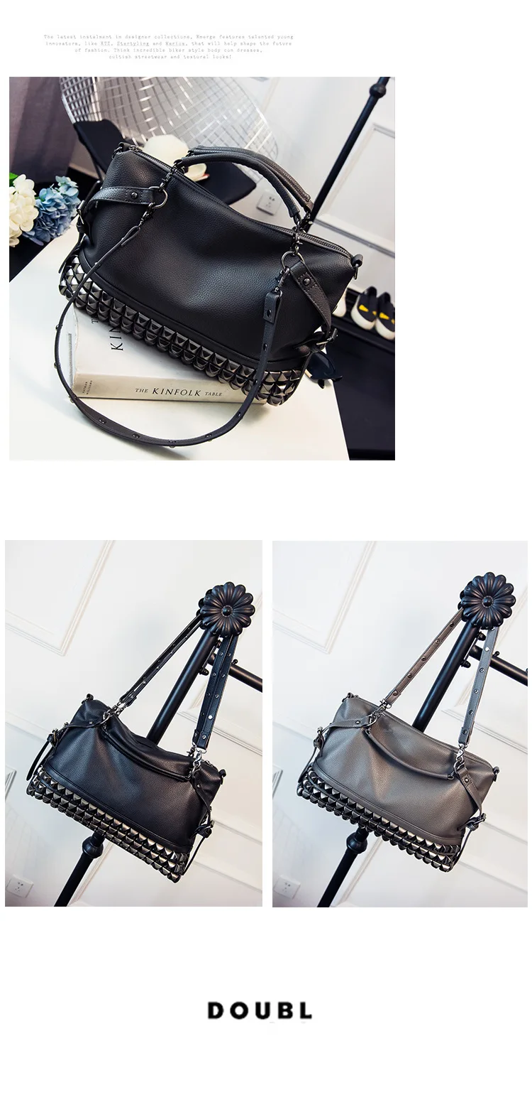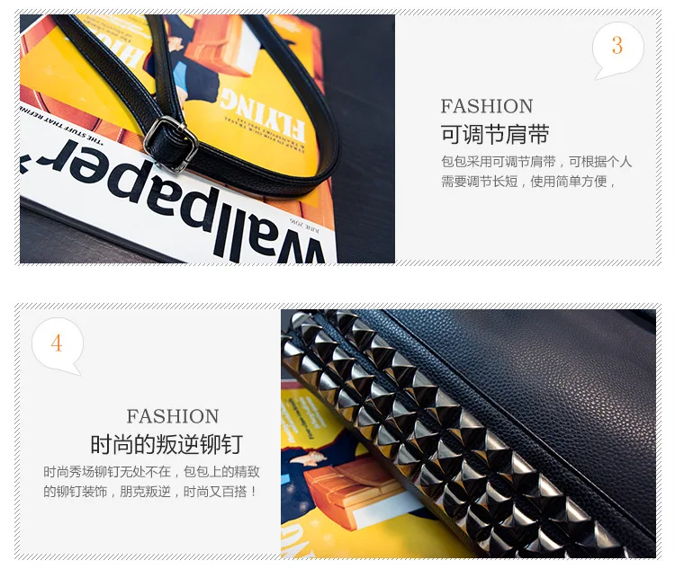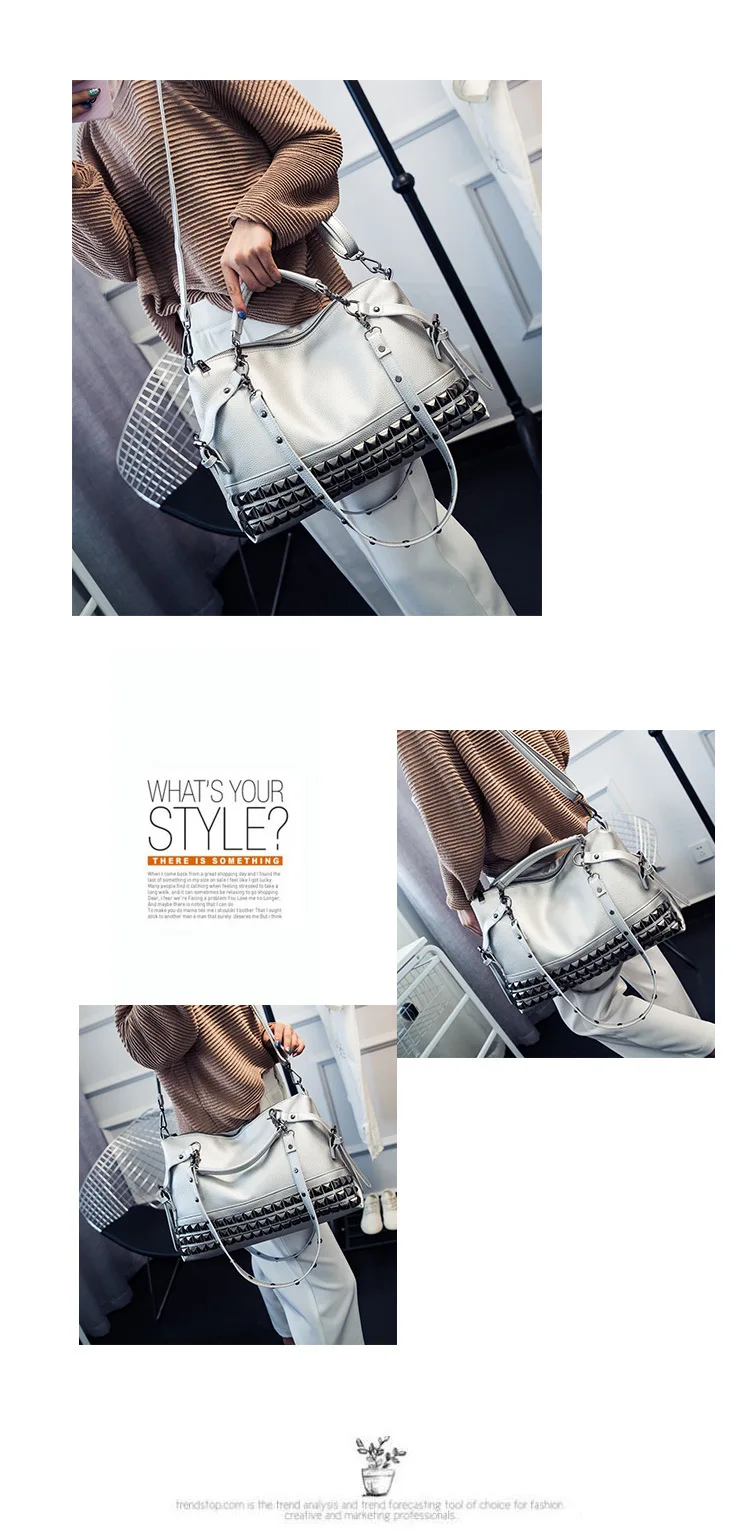 2020 new women's bag PU leather solid color lychee pattern large capacity rivet bag shoulder diagonal shoulder bag punk bag