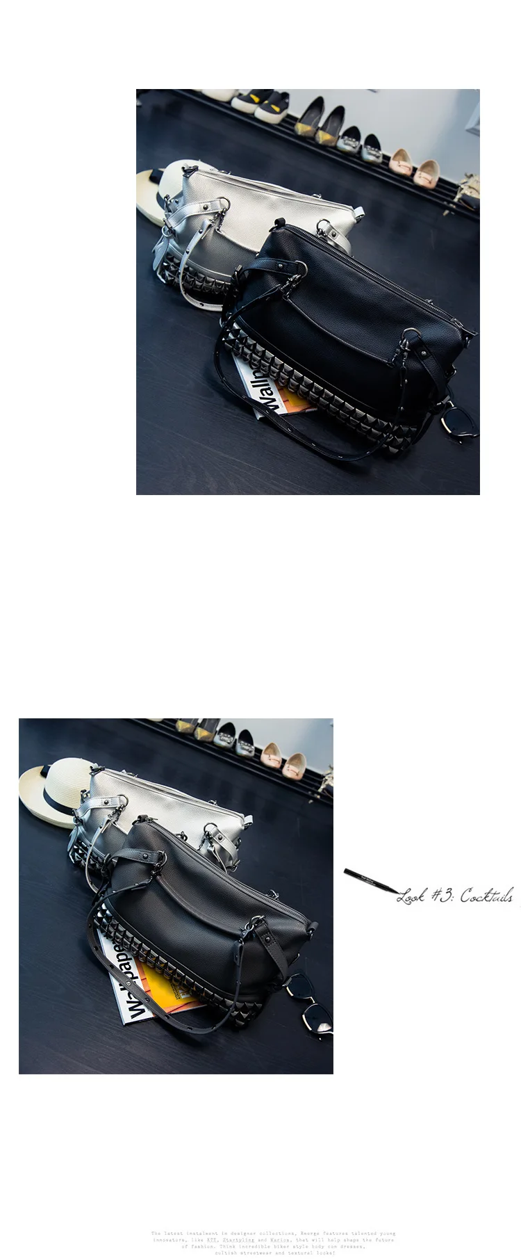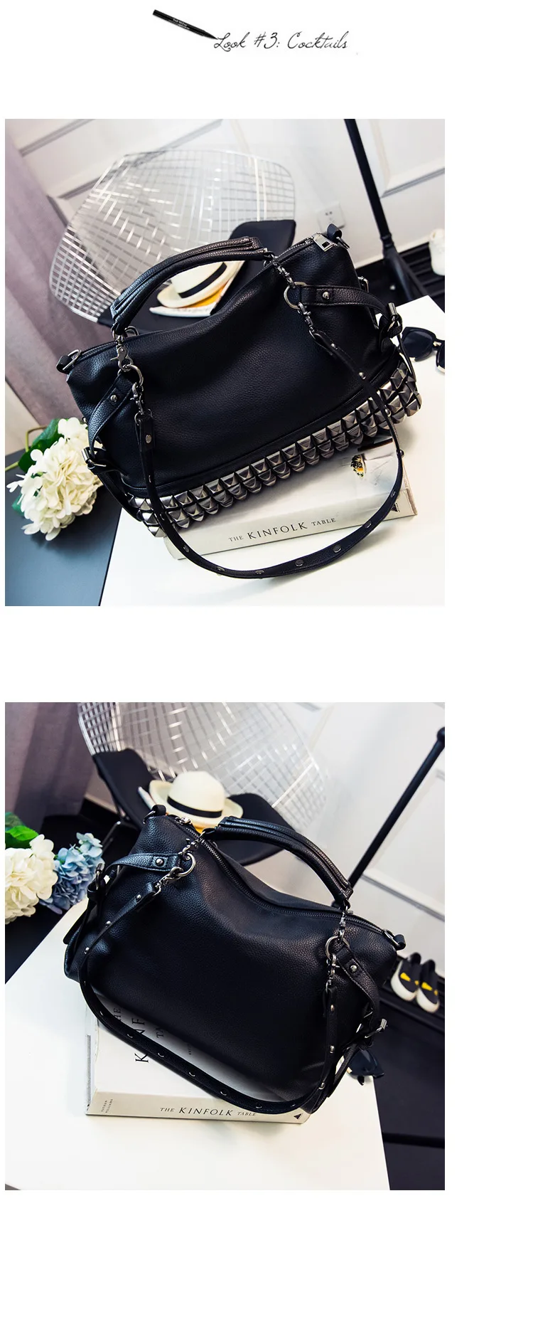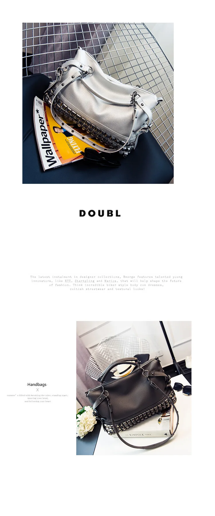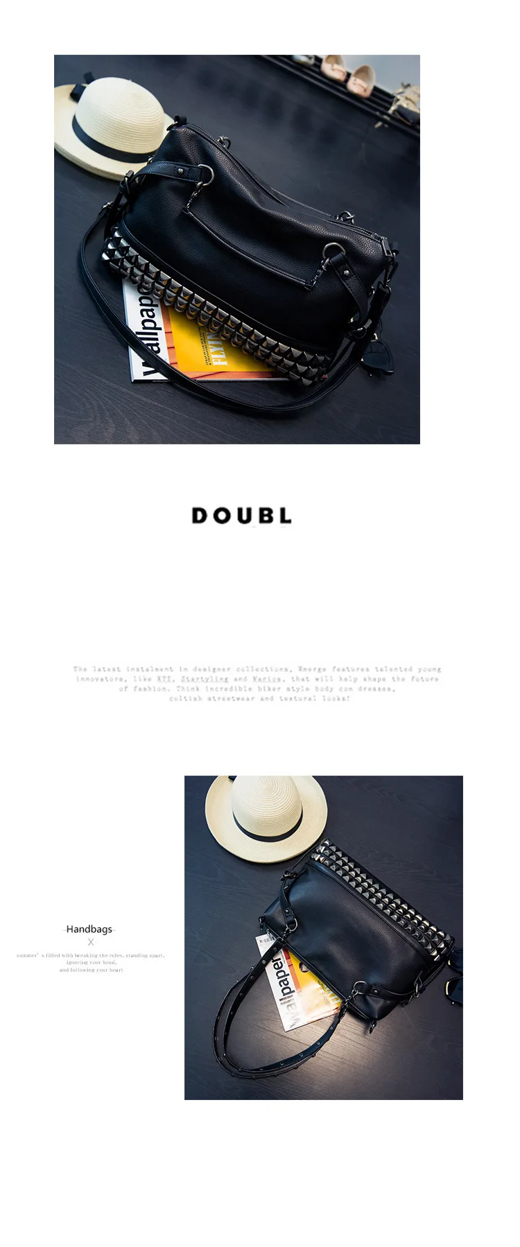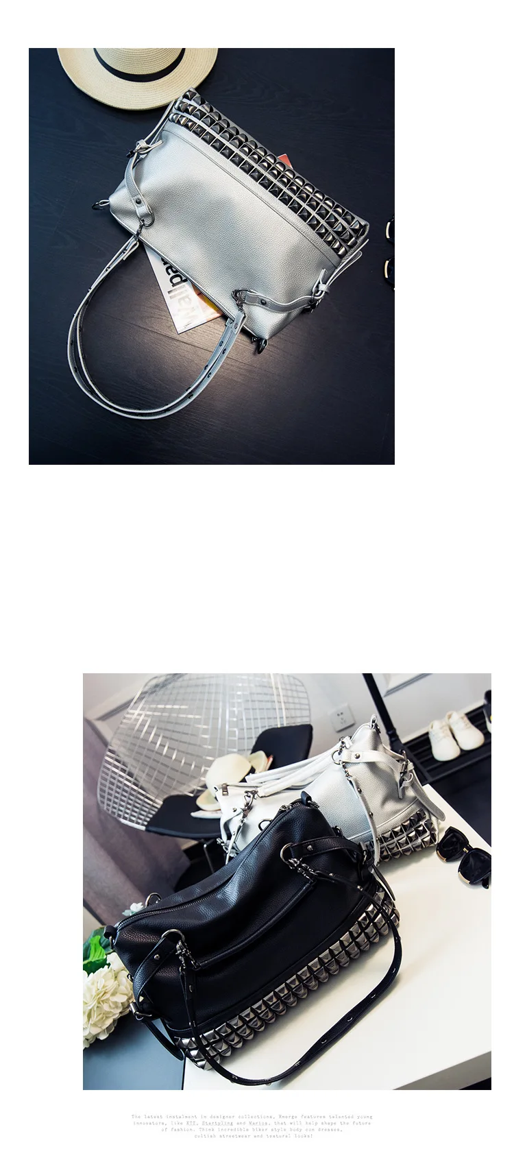 2020 new women's bag PU leather solid color lychee pattern large capacity rivet bag shoulder diagonal shoulder bag punk bag