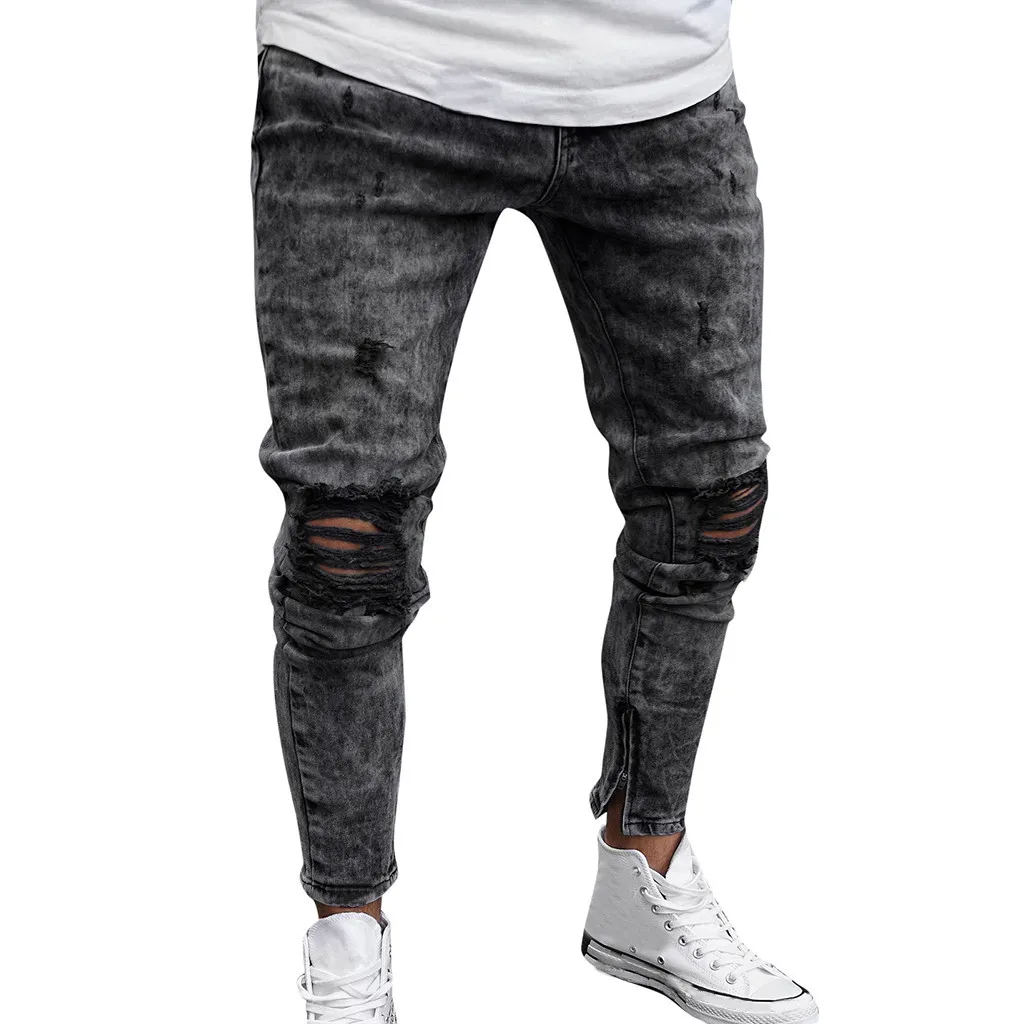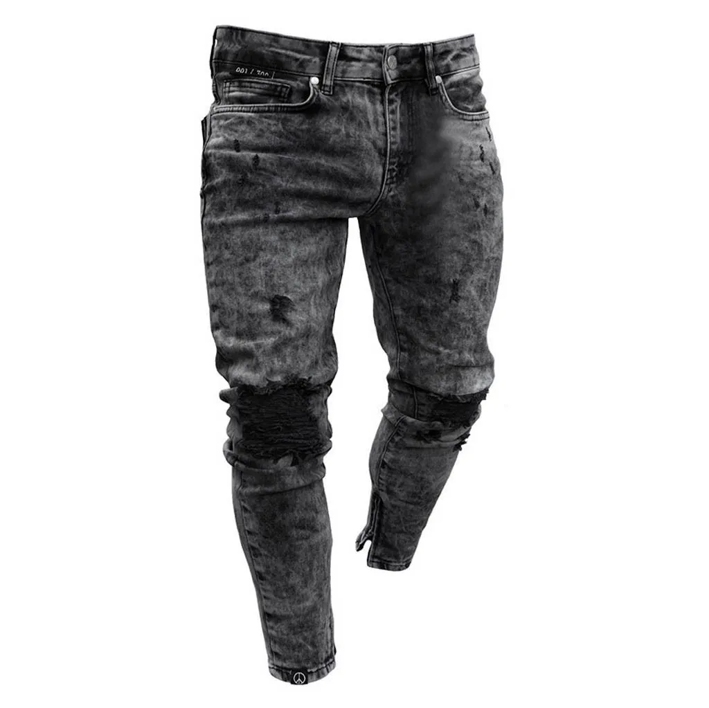 Smart Trousers For Men Mens Skinny Stretch Denim Pants Distressed Ripped Freyed Slim Fit Jeans Trousers Black Mens Sweatpants